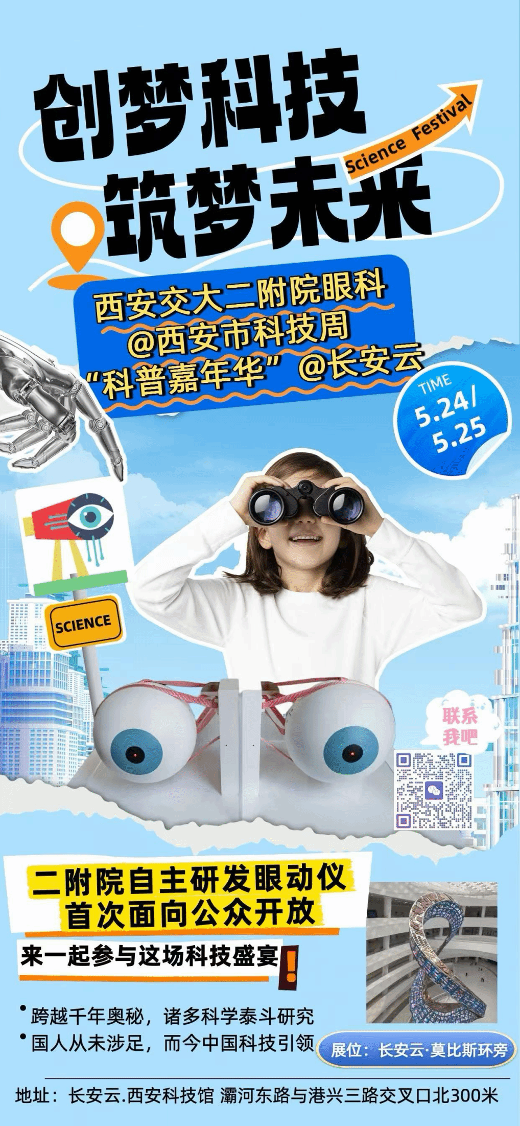5月24日至5月25日,2025年西安市科技活动周主场活动在长安云·西安科技馆拉开帷幕。由西安交通大学第二附属医院眼科科研团队历时10年研发的“程控眼动仪”在现场备受关注。