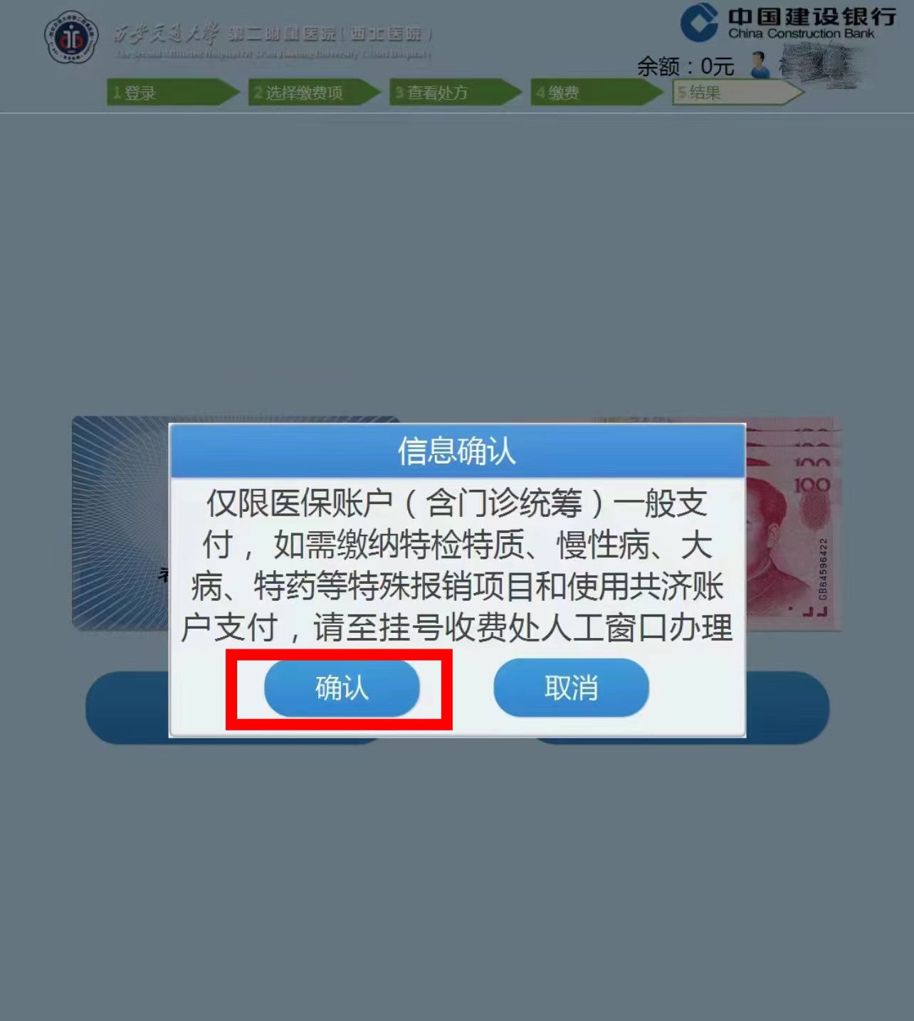 3、支付方式选择医保支付,阅读信息提示后点击确认。