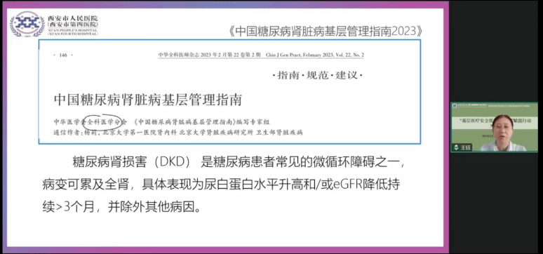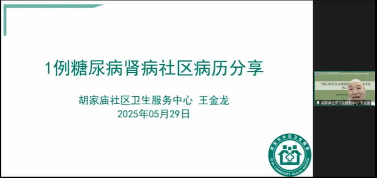 西安市碑林区胡家庙卫生服务中心的王金龙主任医师进行病例汇报。他详细介绍了糖尿病肾病在社区管理中的实际案例,分享了在基层工作中如何对患者进行病情监测、治疗方案调整以及健康教育等方面的经验。