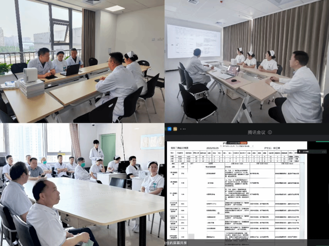 早八点医护人员按照交班规范,依次汇报病区的整体情况,并提出患者存在的疑难问题,高年资医师给予指导并共同解决,确保了双院区医疗工作的连续性和患者的医疗安全。