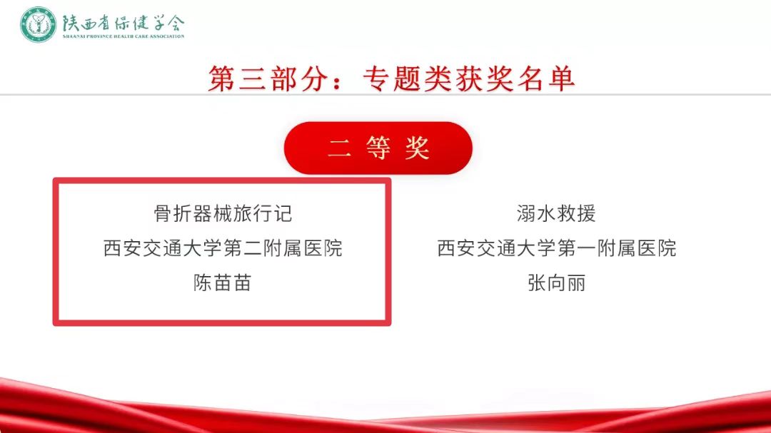 本次大赛由陕西省保健学会联合保健助医慈善基金主办,自2022年10月14日启动,共收到全省82个单位推荐的申报视频类、图文(绘画)类、专题类作品511部。经过单位推荐、省级初评等环节,有491部作品参与网络展示。评审现场,由各医学学健康科普领域和媒体专家组成评审团,从科学性、艺术性、传播性、影响力等方面对入围短视频类前10名、专题类前6名、图文类前8名作品进行评审打分,并从健康科普宣讲、作品创作、荣誉奖励等方面对入围对象进行综合评定。依据各单位参赛作品数量,结合网络投票情况和专评委最终评选出各类奖项。我院心血管内科原创视频《从心启航—心脏安康,康复先行》荣获专题类一等奖,消毒供应科原创视频《骨折器械旅行记》荣获专题类二等奖,消化内科原创视频《赶走胃幽灵,未来更美好》、干四病区原创视频《警惕肠子里的“肉疙瘩”,共筑肠健康》、妇产科原创视频《关于人工授精那些事儿》、骨二科原创视频《崴脚后,你做对了吗?》荣获短视频类优秀奖。