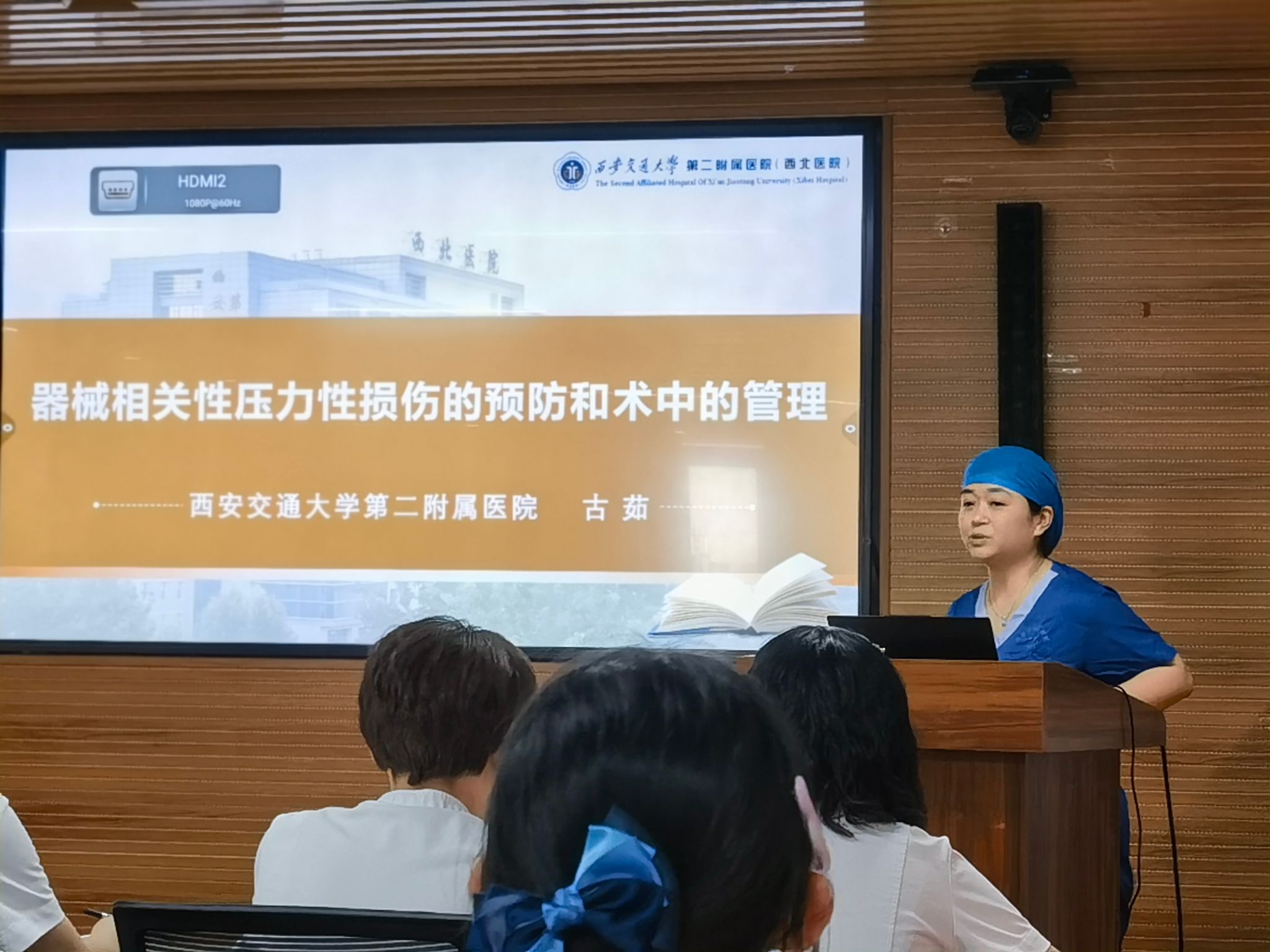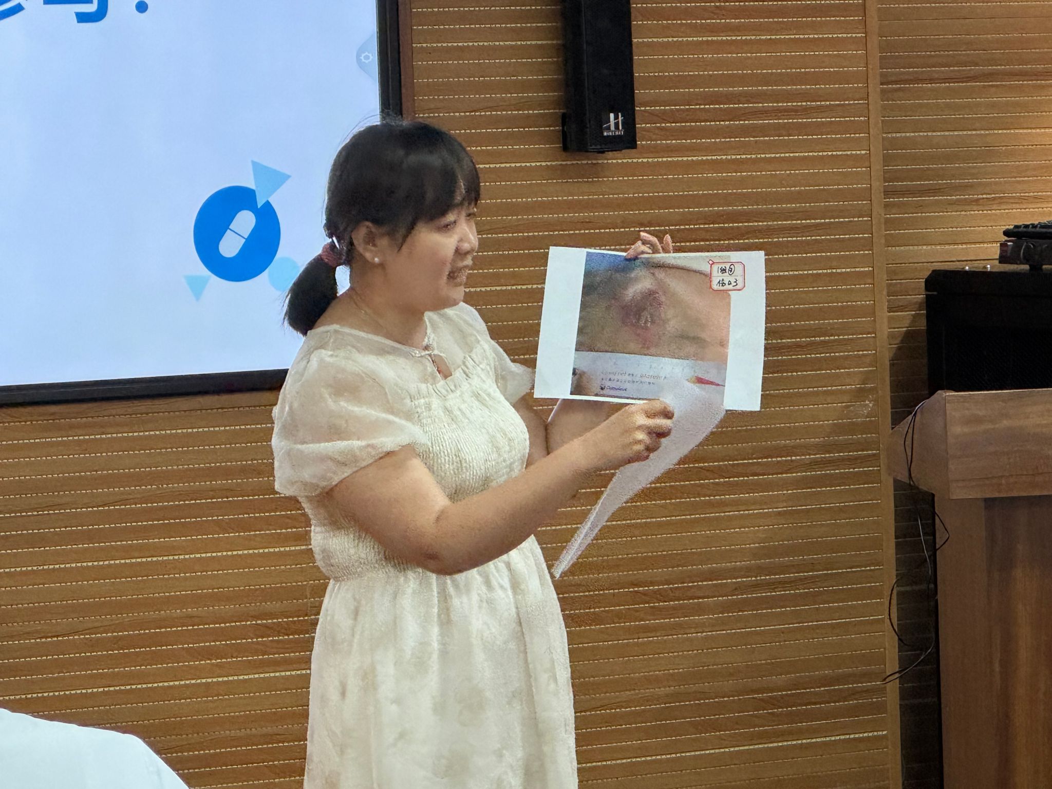 在专题授课环节,四位老师结合临床实际进行了深度分享:古茹副护士长以《器械性压力性损伤患者的管理(术中PI)》为题,系统解析了手术体位摆放、器械选择与压力监测的关键技术,提出“术前风险评估、术中动态防护、术后追踪随访”的全流程管理策略。王京副护士长针对心脏外科手术患者的特殊性,分享《心脏外科手术患者压力性损伤的管理》,通过典型案例剖析了体外循环术中皮肤保护的创新举措。伤口治疗师刘颖围绕《伤口评估和伤口床的准备》,详细演示了标准化伤口评估工具的应用及清创技术选择,并结合实际案例进行了精彩讲解。重症医学科郭丽娜老师则以一例疑难危重患者为案例,从营养支持、皮肤管理及营养对皮肤的影响等方面解读《营养支持助力伤口愈合》,强调“个体化营养方案”对慢性伤口愈合的临床价值。
