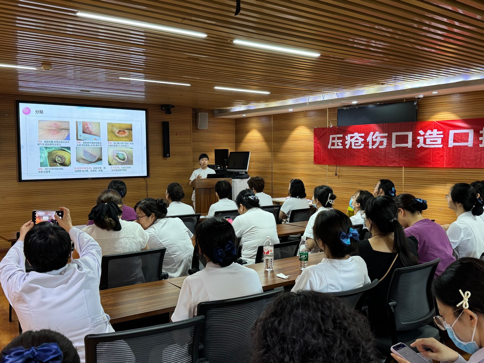 为深化压疮伤口规范化管理,提升护理人员专业实践能力,我院压疮伤口造口专科护理小组于6月12日下午举办了压疮伤口管理专场会议。本次会议聚焦术中压力性损伤管理、特殊患者护理及伤口愈合关键技术,采用“理论授课+工作坊实操”的创新模式,为全院护理骨干呈现了一场学术与实践深度融合的盛会。护理部副主任姚聪、压疮伤口造口专科护理小组核心专家成员、各科室压疮伤口造口专科小组组长及护理骨干近60人参加会议。会议由神经外科压疮专科小组组长龚程芳主持。