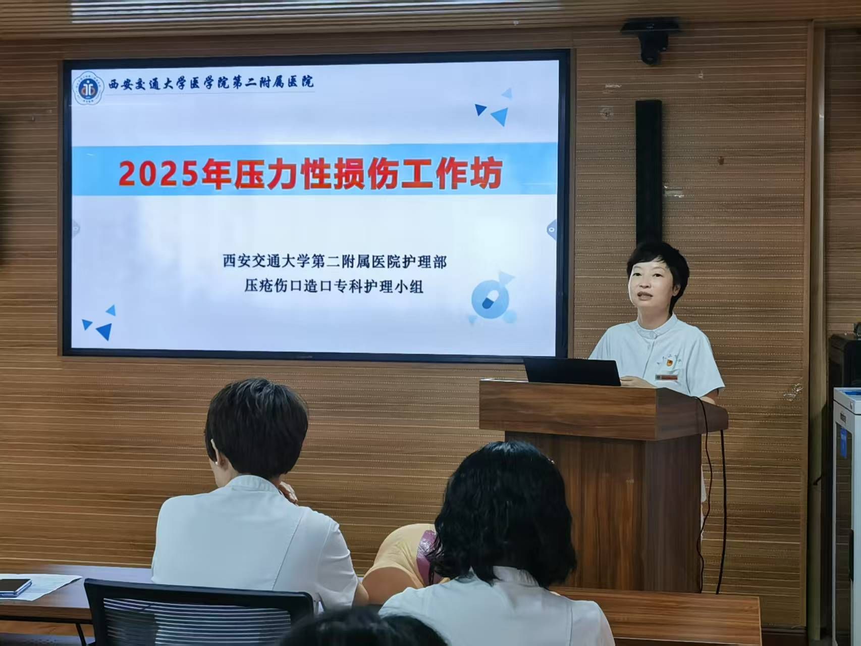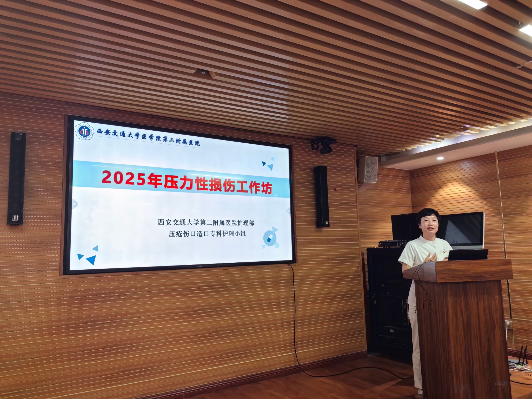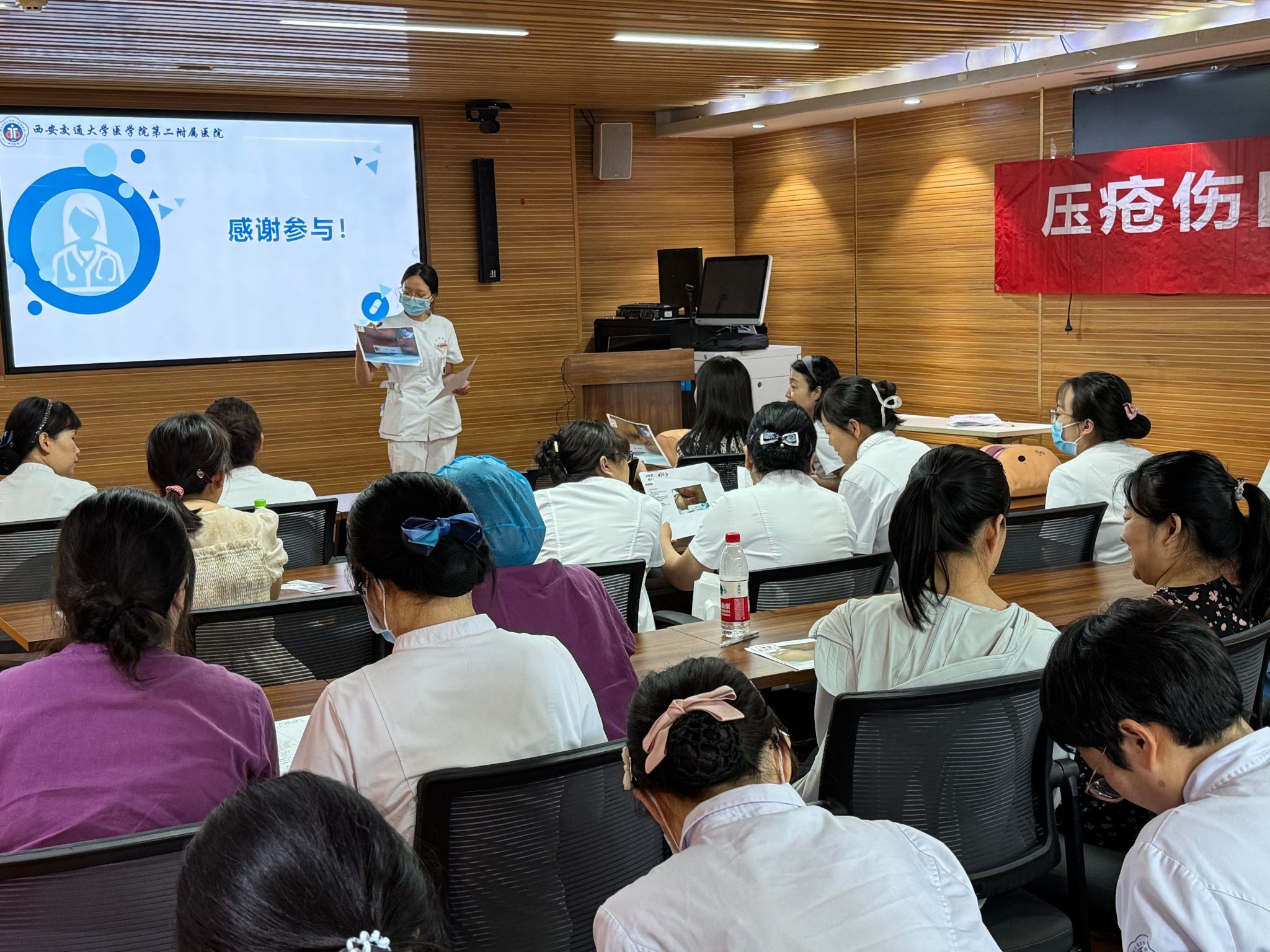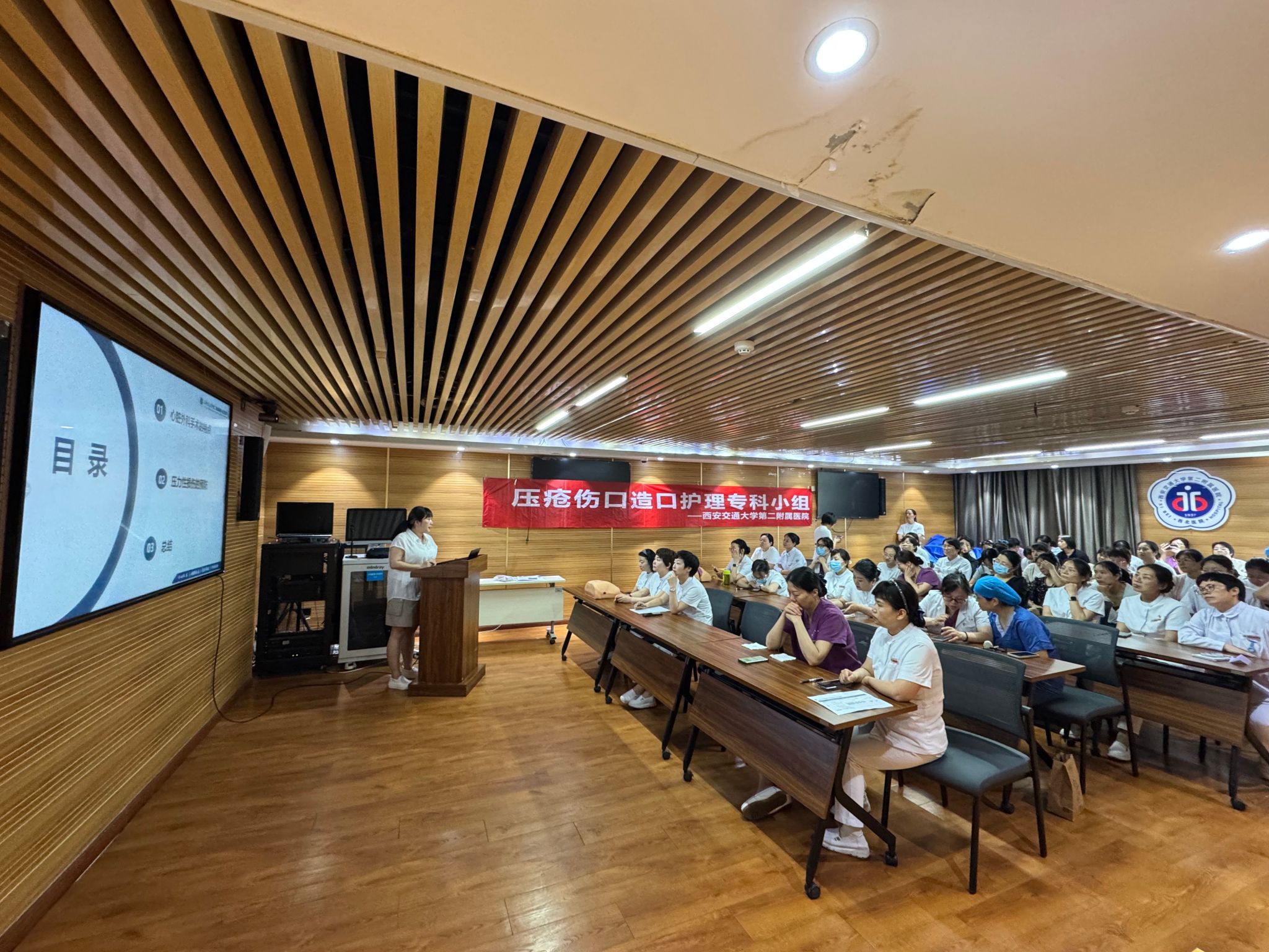 为强化理论转化能力,会议设置压疮工作坊环节,以练促学、夯实基础。压疮伤口造口专科护理小组由王金娟副护士长主讲《2025年压疮伤口工作坊方案》,详细明确操作流程、目标和要求,并围绕伤口评估、伤口床准备及处理等内容进行指导,为后续实操提供明确方向。