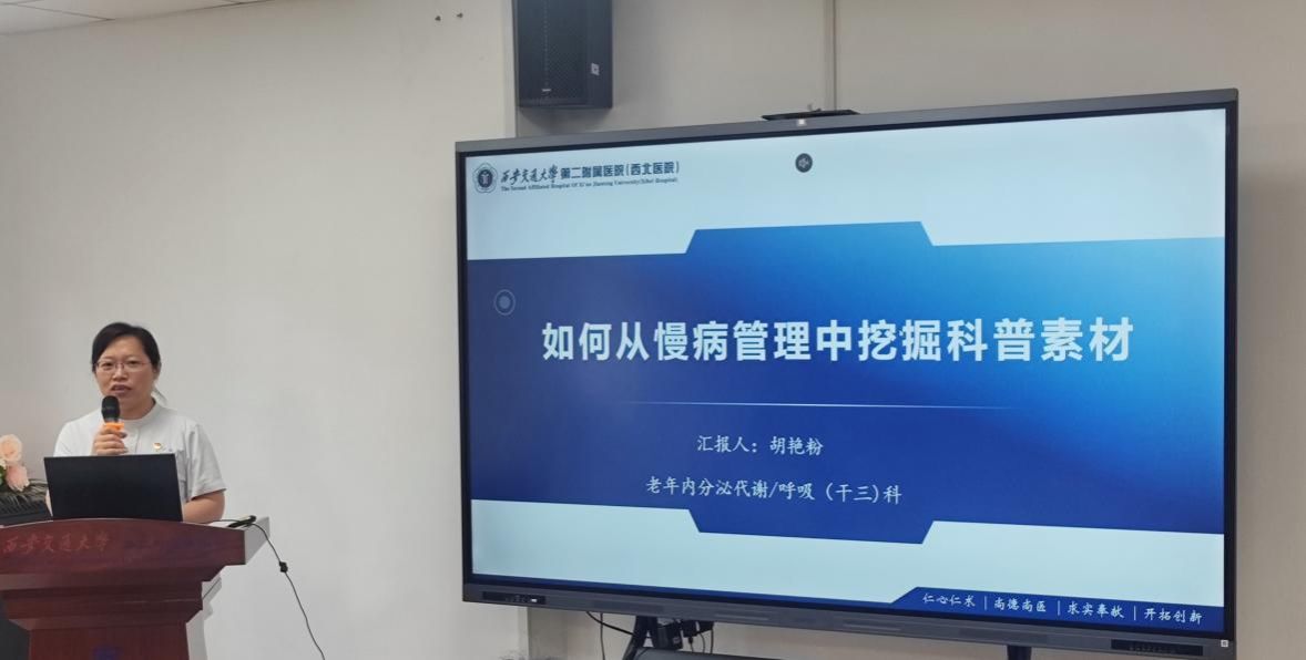 会议伊始,胡艳粉主管护师围绕“从慢病管理中挖掘科普素材”展开系统培训。她首先强调了科普工作在慢性疾病管理中的重要性,指出慢性疾病管理需要长期的患者教育支持,而科学化、通俗化的健康科普是提升患者治疗依从性和自我管理能力的关键抓手。她指出,通过有效的科普,可以帮助患者更好地理解疾病,掌握健康管理的技能,从而提高生活质量。