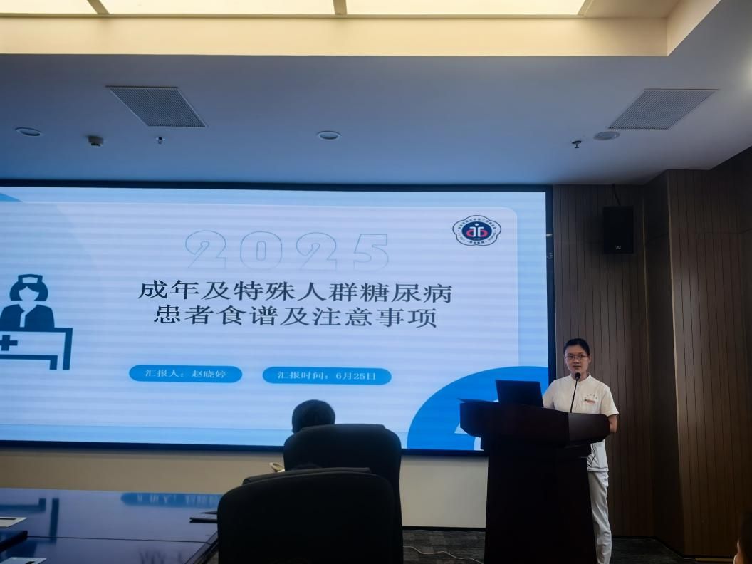 2025年6月25日,我院糖尿病护联小组在干部楼六楼新会议室成功举办培训活动,本次培训包含《当糖尿病‘偶遇’甲亢— 1例2型糖尿病合并甲亢患者的护理查房》,《糖尿病特殊人群饮食指导处方制定》,《成人肥胖食养指南解读及食物标签工作坊》三个专题课程。会议由糖尿病护联小组组长李领侠主持,糖尿病护联小组核心成员、联络员及各科室感兴趣的护士参与培训,共计70余人。