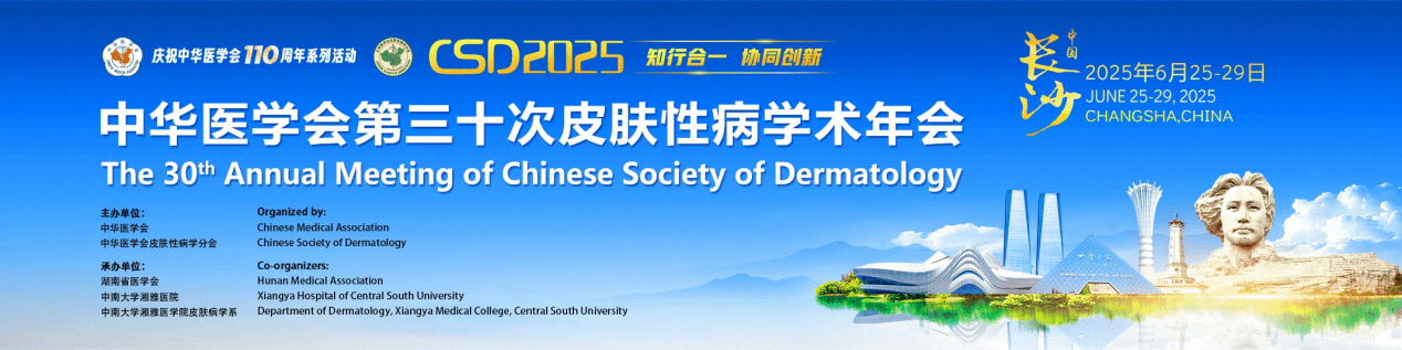 2025年6月26日至29日,中华医学会第三十次皮肤性病学术年会(CSD2025)在湖南长沙隆重召开。本届年会以“知行合一,协同创新”为主题,在传承经典学术内容的基础上,对学术栏目进行了优化升级,全方位、多角度地展示了皮肤病学的规范诊治、前沿进展与未来趋势,为国内外专家学者搭建了高水平的学术交流平台。