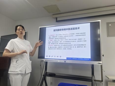赵格格主管护师聚焦泌尿外科中医适宜技术,将理论与临床深度结合,详细讲解了耳穴埋豆、隔物灸(雷火灸)、揿针、中药贴敷、超声波治疗等疗法,系统阐述其在泌尿外科外科患者术后疼痛管理、胃肠功能恢复及快速康复中的应用,帮助护士们深刻理解中医护理“辨证施护”的精髓。培训后,团队将对护士开展中医适宜技术操作考核,确保护理人员人人掌握操作要点,实现中医护理技术操作标准一致 。自2024年10月份我科开展中医适宜技术以来,已为847例患者实施干预,获得医生和患者的一致认可。中医适宜技术的应用,不仅丰富了医疗服务内涵,提升了医疗服务占比。更让患者获得了更全面、个性化的照护,就医体验与满意度显著提升。
