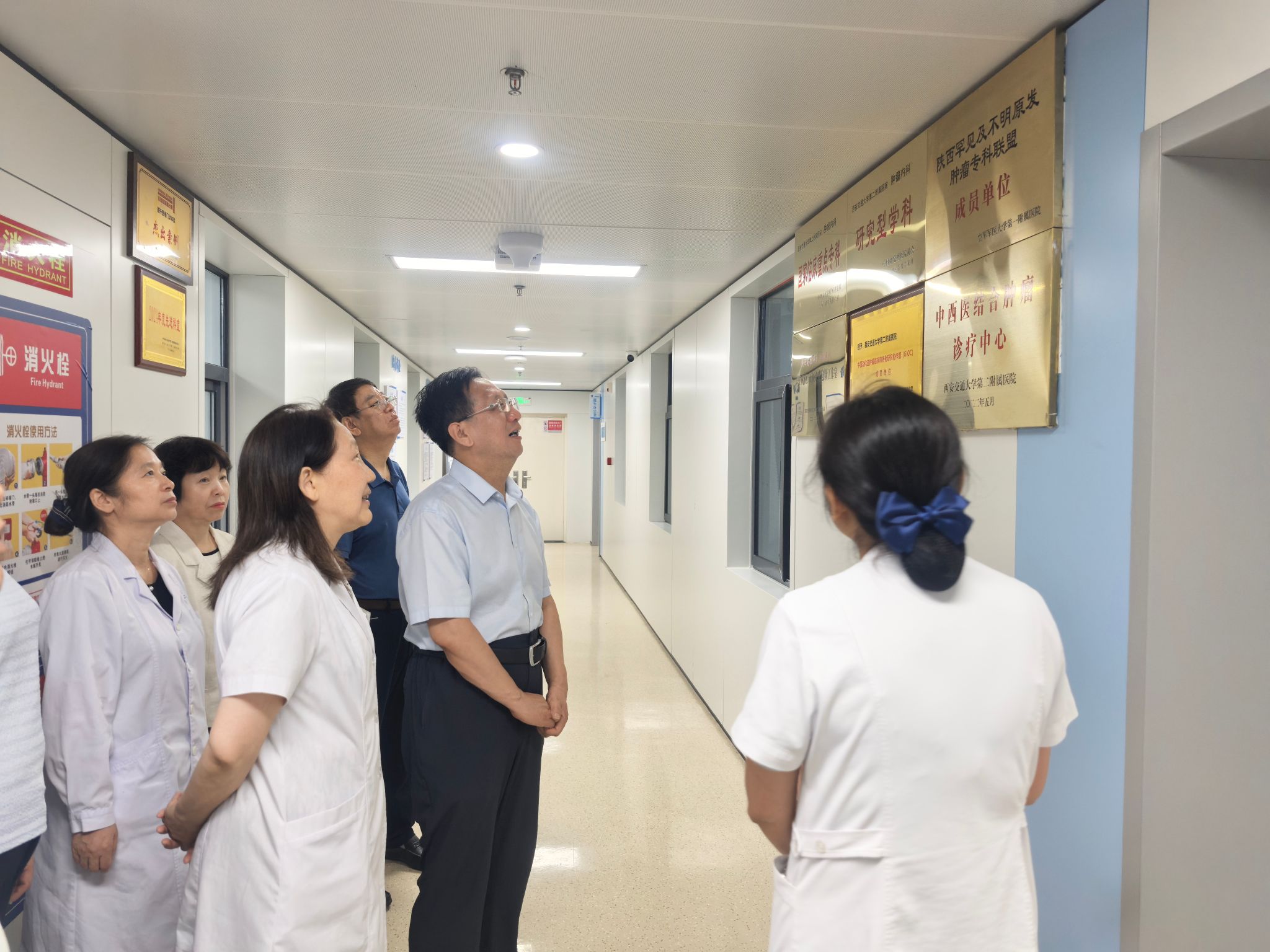 座谈结束后,孙科副主席一行在刘昌书记等人的陪同下,前往肾病科、肿瘤内科、采血中心进行了实地调研,详细询问了解了我院在便民服务、提高效率、医疗保障等方面开展的流程举措。