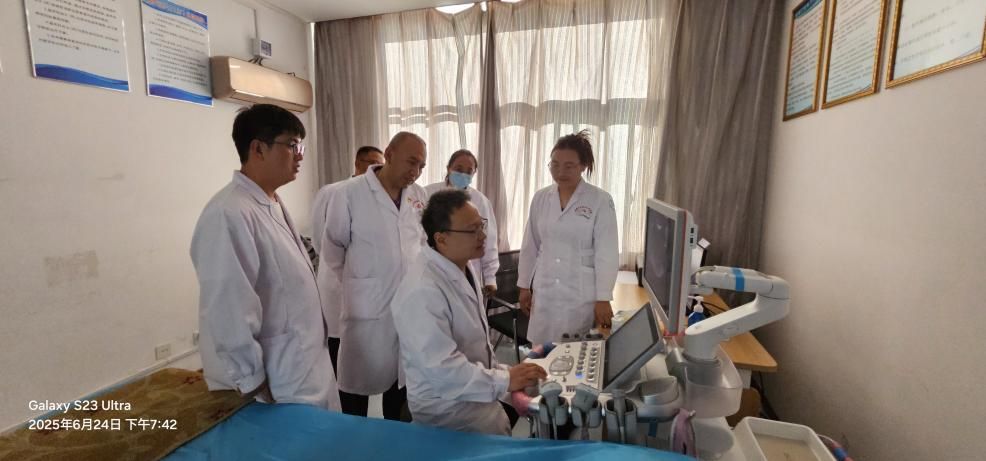 申请提交后,何鑫持续跟进审批进展,主动对接阿里地区卫健委、地区人民医院相关部门,反复完善筹备材料。面对高原地区医疗资源及质控基础薄弱等挑战,他多次连线我院超声医学科、陕西省超声质量控制中心周琦主任、马文琦秘书,请教质控体系建设经验,结合阿里实际优化方案,确保中心筹备既符合国家标准,又贴合当地需求。同期为了提高阿里地区人民医院及各县超声科的业务能力,每周二开展专题讲座,邀请地区及外省超声专家(包括:西安交大二附院、西安市儿童医院、西安市红会医院、西安市中医医院等)授课,并与县级医院超声科同步线上直播。每周四开展疑难、阳性病例讨论,进一步规范超声诊疗规范。