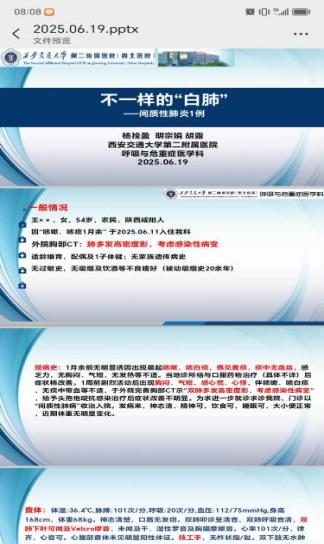 多方线上疑难病例讨论:6月,呼吸与危重症医学科继续与西安交通大学第二附属医院,新疆医院白鸟湖医院进行线上疑难病例讨论,针对胸腔积液及反复发作性肺炎病例进行抽丝剥茧,逐渐分析,制定最佳治疗方案,同时参与医生也得到了临床思维训练,对该类疾病有了更开阔地诊疗思路,更有利于此类疾病的诊治。