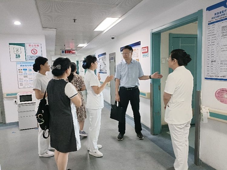 2025年7月15日上午,松滋市卫生健康局总会计师杨丹琴,人民医院党委书记黄松华、副院长黄杏一行6人莅临我院参观交流无陪护病房运行情况及管理经验。西安交通大学第二附属医院副院长种铁,护理部主任杨惠云、副主任孔德玲、姚聪,骨科中心·脊柱与骨肿瘤病区副主任蔡璇、护士长李珂、副护士长陈静参加座谈会。座谈会在骨科中心示教室举行,由护理部主任杨惠云主持。