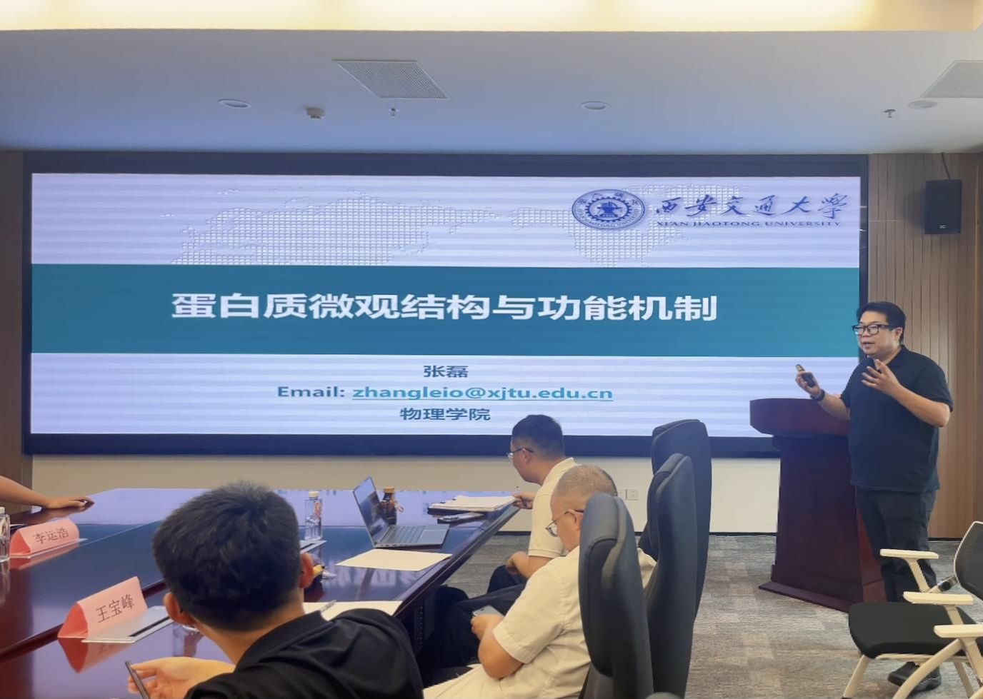 为进一步推动学科高质量发展,拓展学术视野,7月16日下午,我院老年普通外科特别邀请国家杰出青年科学基金获得者、西安交通大学物理学院博士生导师张磊教授,以及国家级青年人才、博士生导师王喆教授开展专题讲座,并进行跨学科交流研讨。本次讲座中,张磊教授作题为“蛋白质微观结构与功能机制”的学术报告,王喆教授则围绕“二维材料及其光电器件”作专题分享。会议由老年普通外科王志东主任主持,我院眼科柏凌主任、老年普通外科黎跃华副主任、特聘科研副主任葛治伸教授、耳鼻喉科胡娟副主任、肿瘤放疗科王宝峰教授及张丽护士长出席交流,科室医护人员及研究生踊跃参加。