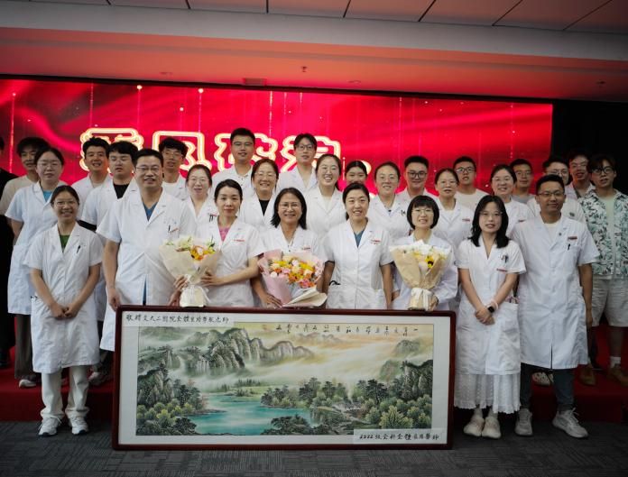 会议最后举行了简朴而隆重的表彰仪式。基地为评选出的三名优秀住培医师颁发了镌刻个人姓名的纪念听诊器,寓意“医者仁心,永驻心间”。同时,为全体住培医师准备了实用的《全科常见未分化疾病诊疗手册》,期冀他们在医学道路上永葆求知之心。毕业生们则向全体带教老师敬献了水墨匾额和鲜花,表达诚挚的感恩之情。在洋溢着青春笑容的毕业合影中,活动圆满落下帷幕。