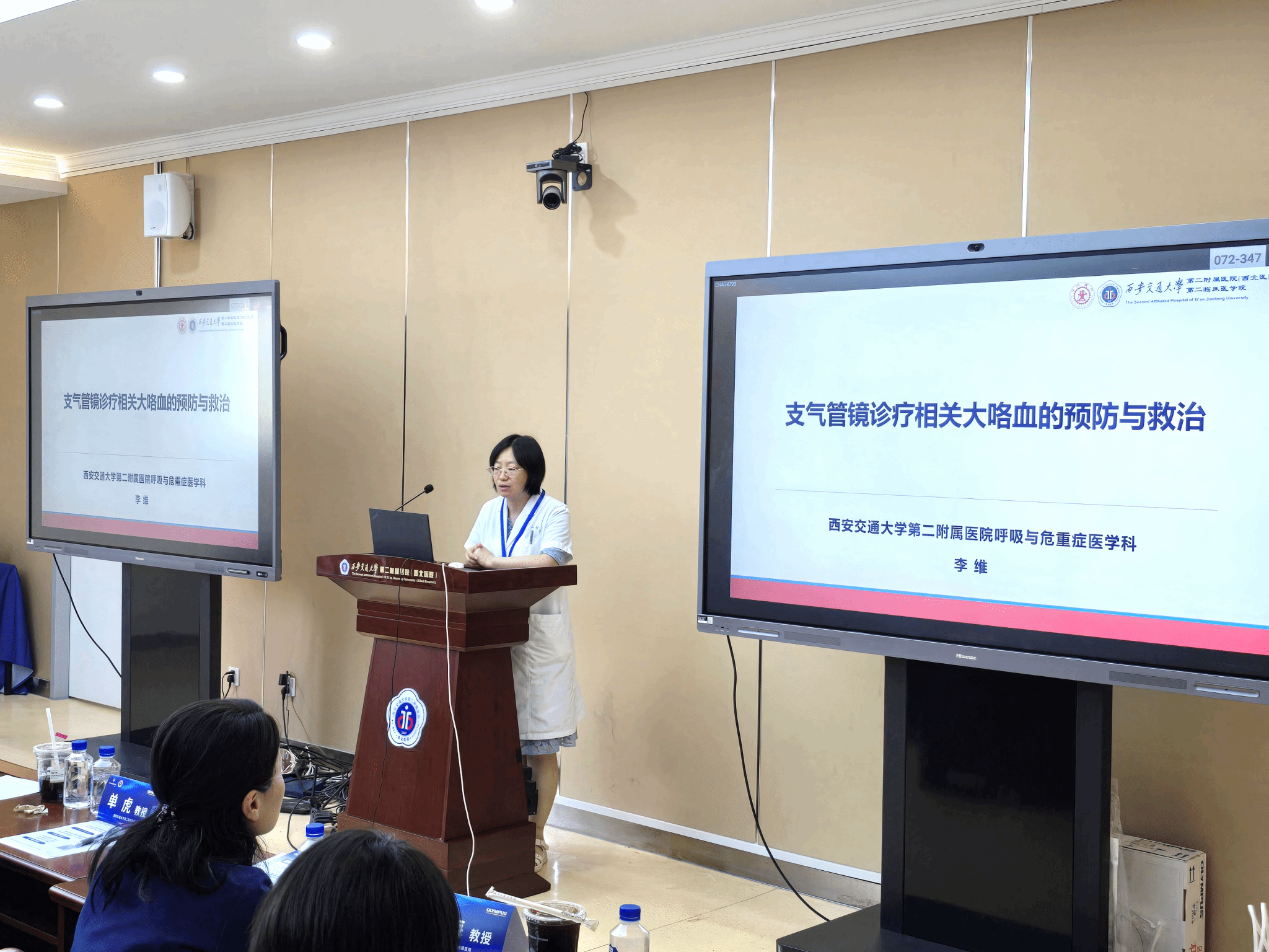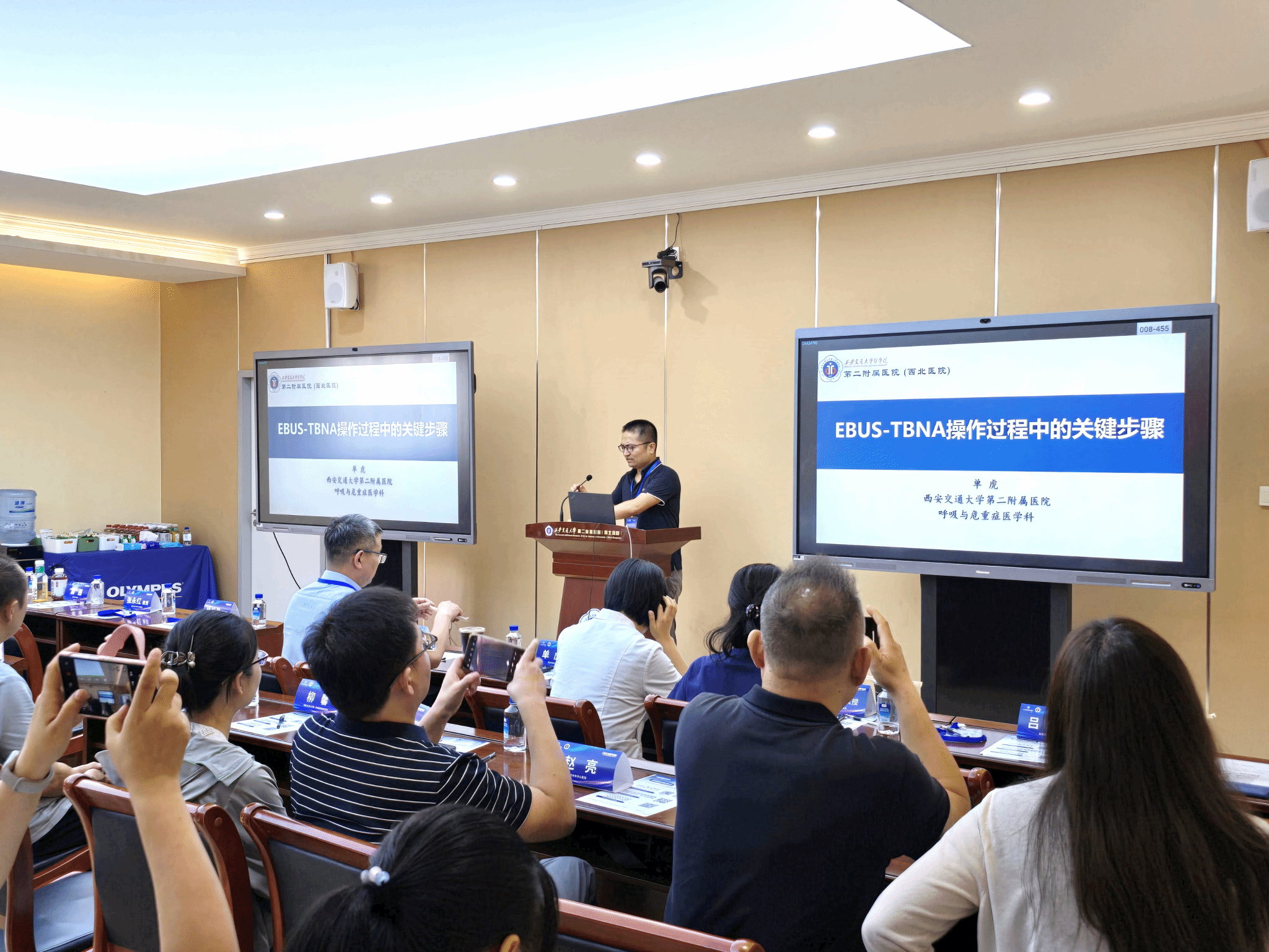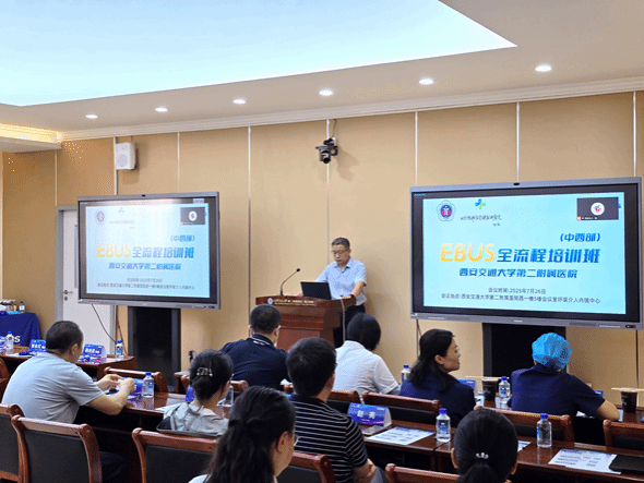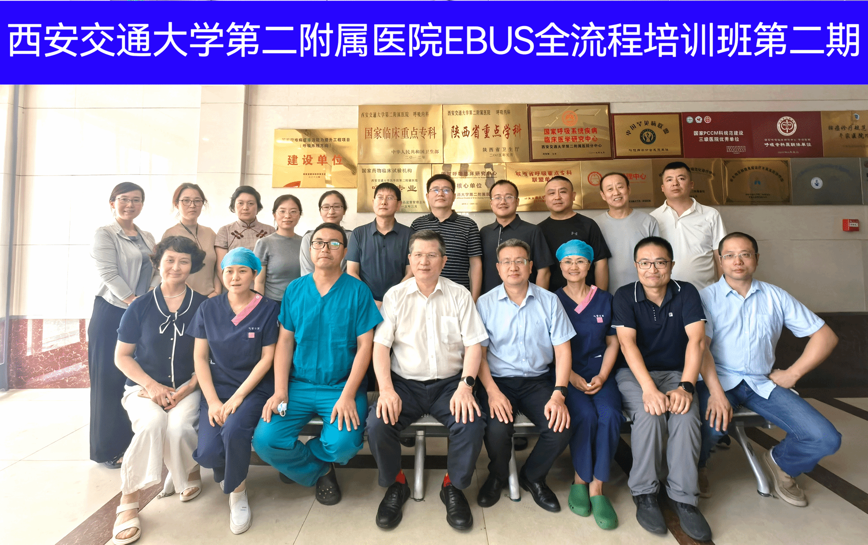 在呼吸介入诊疗技术快速发展的背景下,为提升中西部地区超声支气管镜(EBUS)技术的规范化应用水平,2025年7月26日,由北京博雅医学健康研究院主办、西安交通大学第二附属医院呼吸与危重症医学科承办的“EBUS全流程培训班(中西部)”在我院成功举办。本次培训吸引了来自宝鸡市中心医院、宝鸡市人民医院、汉中市中心医院、延安大学附属医院、西安交大第一附属榆林医院、榆林市第三医院、西安市第一医院等十余家医疗机构的骨干医师参与,通过“理论+实践”的创新模式,推动EBUS技术在中西部地区的标准化普及。