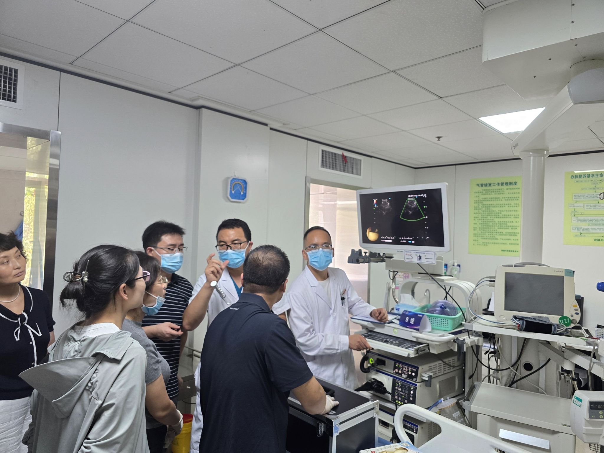 单虎主治医师和谢梅护士进行EBUS实操示范