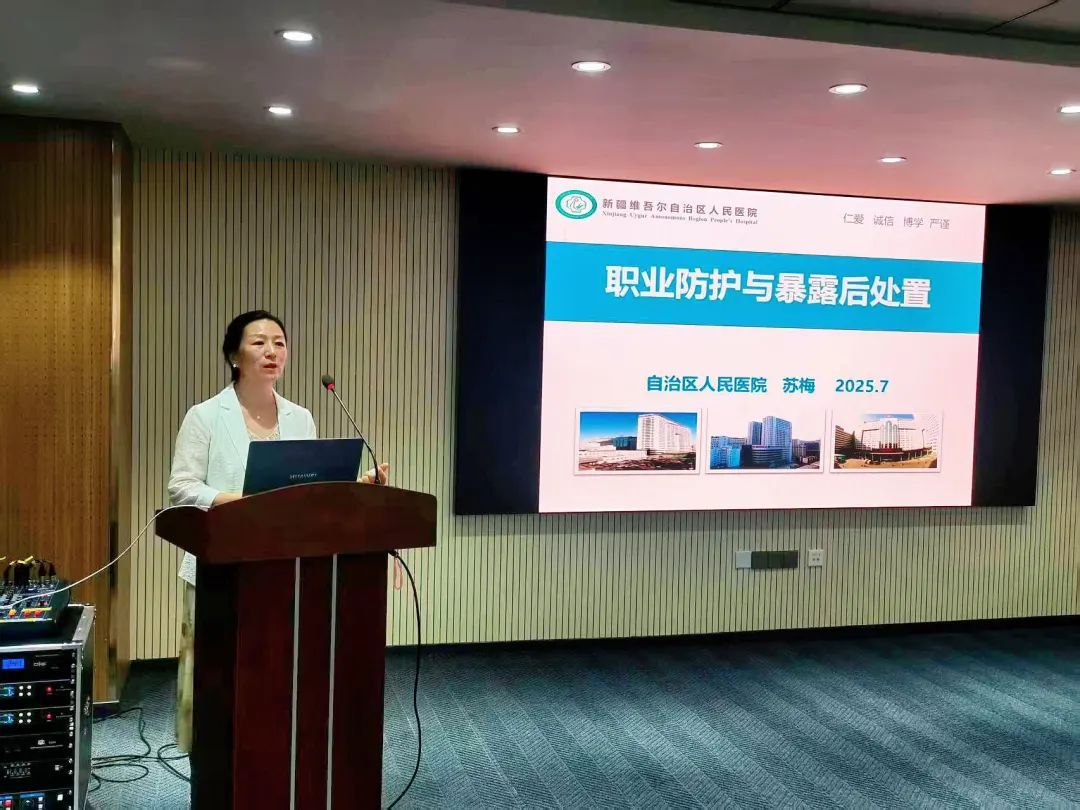 培训特邀自治区人民医院感染管理办公室副主任医师苏梅授课,她从医院感染病例的诊断标准与判定原则、医务人员职业防护要点及职业暴露后的规范处置及追踪管理等方面,通过案例分析、现场问答等多种形式进行授课,将理论知识与临床实践紧密结合,培训现场气氛活跃,互动热烈。