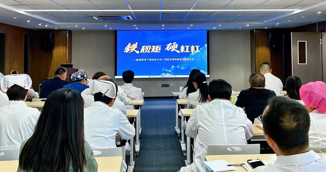 会上,全体人员观看了警示教育片《铁规矩 硬杠杠》,传达了《违规使用医保基金、整治重复检查和违规收费问题典型案例》,通过剖析典型违纪违法案例,引导全院党员干部受警醒、明底线、知敬畏。