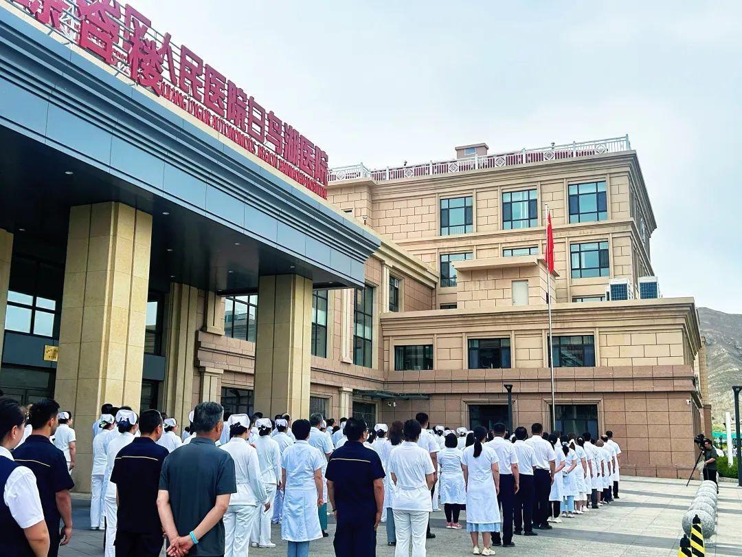 7月1日上午,新疆医院全体党员、职工代表、患者及家属100余人在门诊综合楼前整齐列队,举行庆祝建党104周年升国旗仪式。