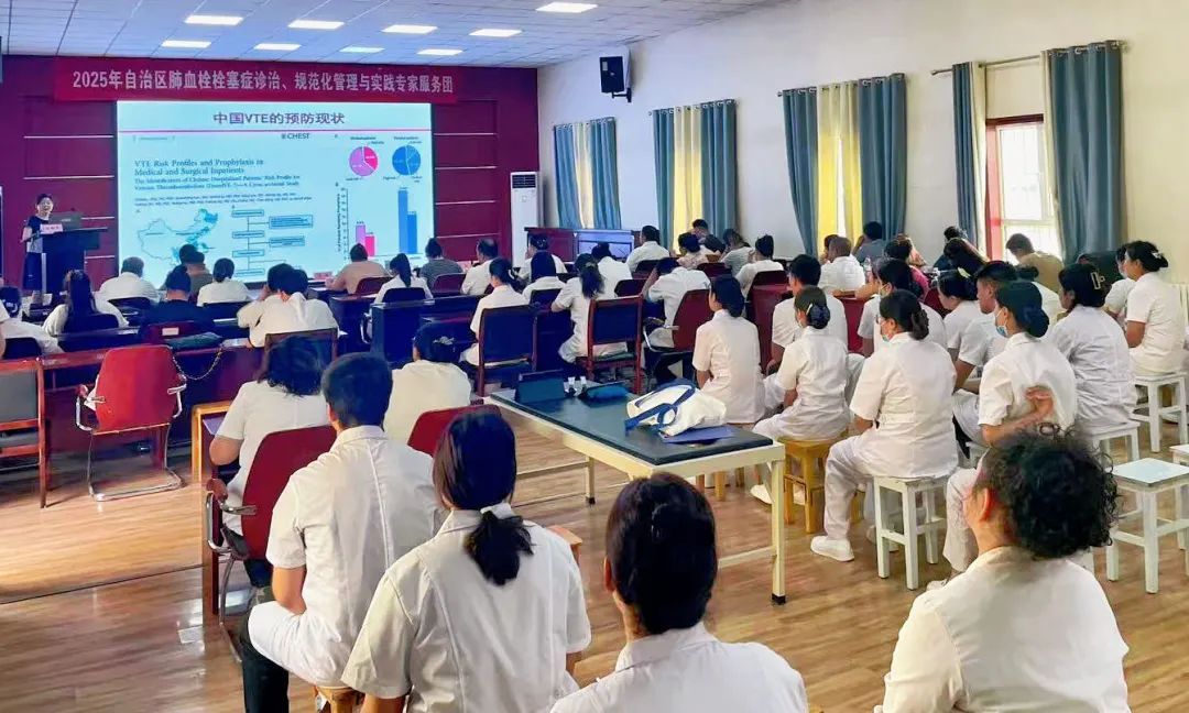 专家团从《2025中国肺血栓栓塞症诊治、预防和管理指南》、肺动脉疾病的诊疗思路和实践经验、静脉血栓风险评估量表的应用等方面进行解读和分享,为参训医务人员带来了宝贵的知识更新和技术提升。专家服务团开展了义诊活动,现场为群众提供咨询和诊疗服务,耐心解答疑问,普及肺血栓栓塞症的预防知识,帮助群众提升健康意识。