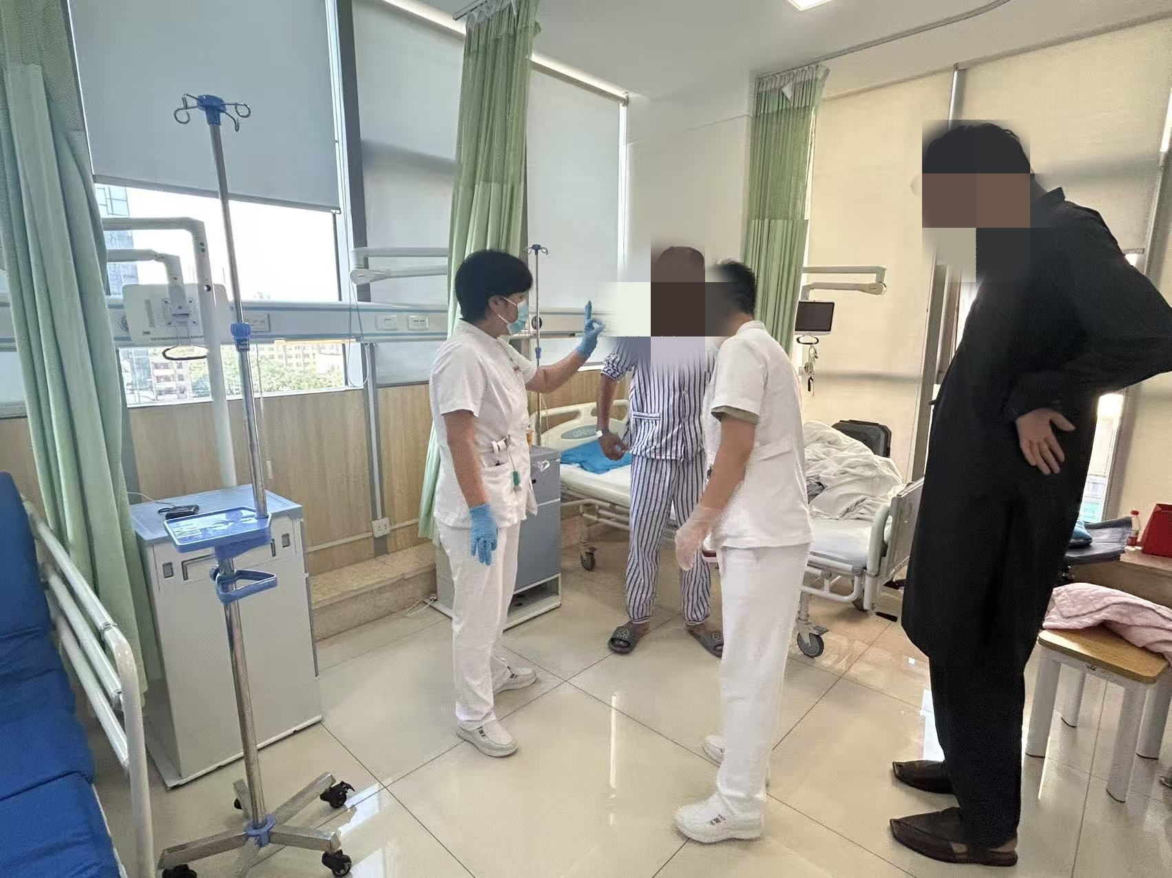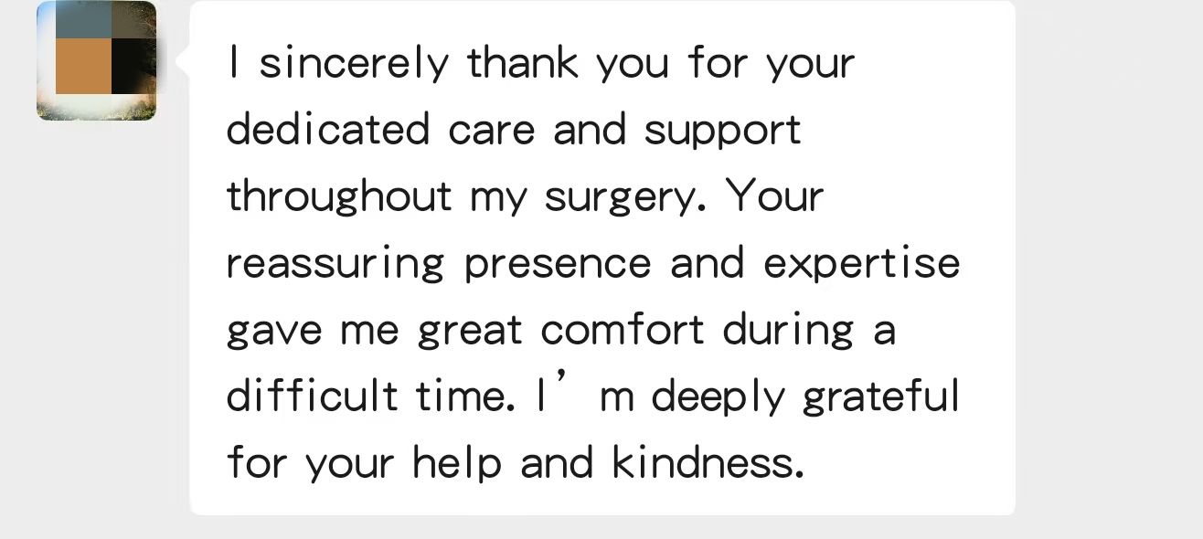 精湛的医术需要温暖的护理相得益彰。为确保WASIM住院及术后沟通无碍、保障各班次护理无缝衔接,责任组长岳卫娜与责任护士张珅主动担当。她们添加患者微信,巧妙利用实时翻译功能,搭建起一条跨越语言的“指尖桥梁”。无论何时收到WASIM的信息,她们都第一时间响应,或亲至床旁,或精准传达给值班同事,确保了医疗信息高效流转和患者需求即时满足。