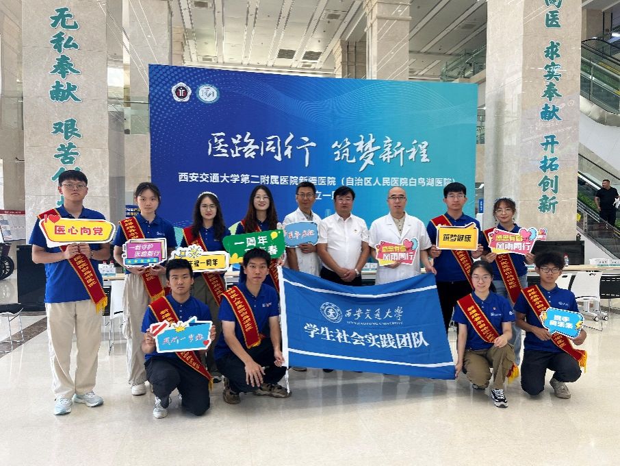 7月23日,西安交通大学第二附属医院新疆医院迎来成立一周年庆典,也是西安交通大学第二附属医院88周年院庆倒计时95天,第二临床医学院宗濂书院师生联合党支部“二院濂青”社会实践团队积极投身院庆系列活动,以青年担当与实际行动为周年庆典献上青春贺礼。