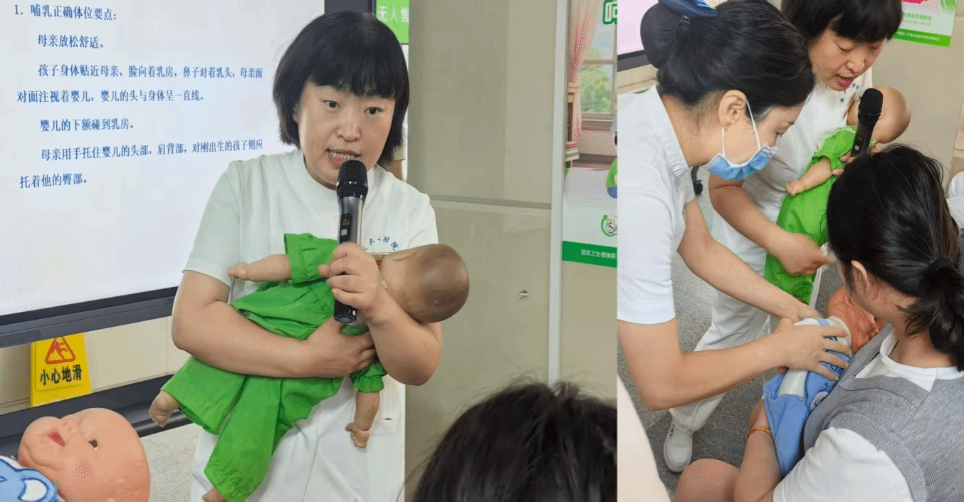 更贴心的是,现场设置了母乳喂养模拟教学环节。在李岐佩的指导下,准爸爸准妈妈们亲手练习抱宝宝的正确姿势、哺乳含乳技巧等实操内容,通过“手把手”教学打破理论与实践的隔阂,让科学喂养知识真正“落地”。