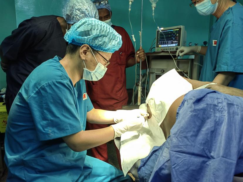 苏丹的医疗条件与国内有差距,在这里必须克服手术器械不足,术中患者一些重要指标无法监测,麻醉药品以及急救药品缺乏,术后肠外营养药品缺乏等困难。这些短板的存在,无疑是增加了治疗的难度。若想将患者成功救治,不仅要将肿瘤完整切除,更要让患者康复出院。围绕着这些问题,医疗队普外科团队和麻醉科团队反复了讨论每一个细节,详细制定了手术和术后治疗计划。