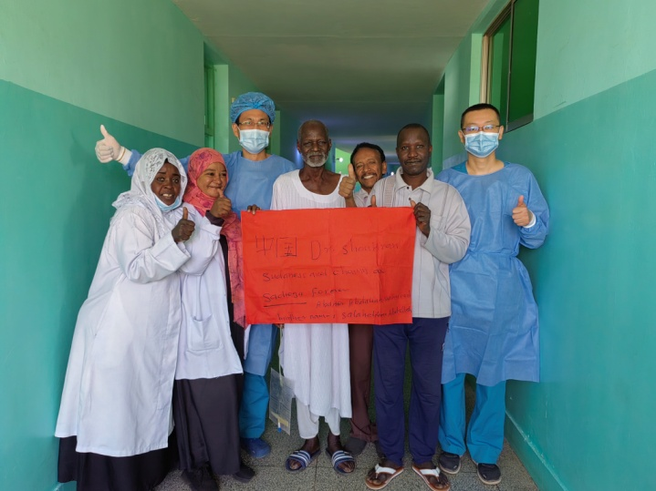 术后经过2周悉心治疗,患者痊愈出院,当地医院的医护人员对普外科团队精湛的医术和认真负责的工作态度非常钦佩,纷纷竖起大拇指。患者和家属非常感激,执笔写下了“感谢中国医生,苏丹人和中国人永远是朋友”。