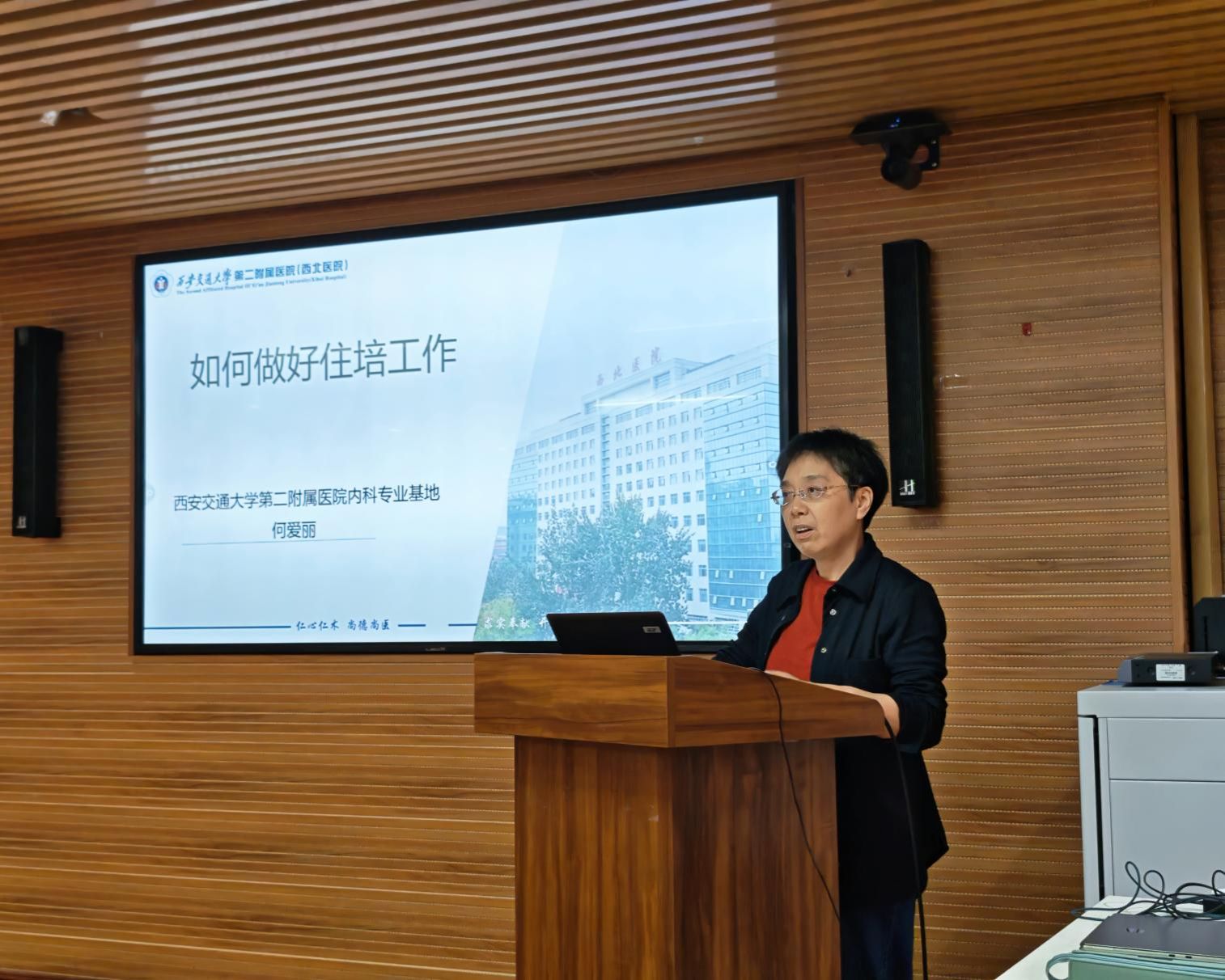 会议在内科学系主任付荣国教授的开幕致辞中拉开帷幕。她强调了住院医师规范化培训在医学教育体系中的关键作用,并呼吁全体师资以高度责任感和使命感共同提升培训质量。随后,内科学系副主任焦杨为2025级新学员作了系统的“入基地宣教”,就内科住培基地的组织架构、师资队伍、培训目标、轮转计划、教学活动及考核方式等内容进行了全面介绍,帮助新学员明晰培训路径与要求,熟悉学系环境。