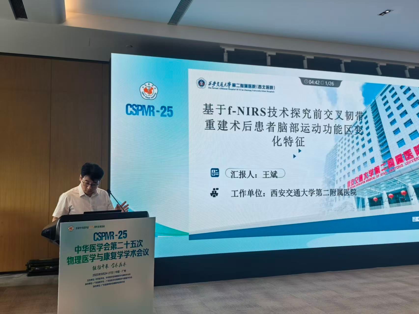 在脑功能研究与神经调控技术应用方面,科室报告了一系列创新性研究。乔鸿飞主任在论文发言中汇报了《基于fNIRS的口腔内电刺激对脑卒中后吞咽障碍康复效果的影响研究》,进一步深化了吞咽障碍的精准评估与治疗。袁海峰教授的口头发言《fNIRS联合ERP检测在PSD疗效评估中的应用》,则展示了多模态神经生理技术在康复疗效评价中的价值。惠艳聘副主任就《iTBS联合FVC改善脑干卒中患者吞咽功能障碍:一项基于fNIRs的临床研究》进行口头发言,探讨了脑神经调控技术与康复治疗结合对吞咽障碍的疗效及其机制,创新了吞咽障碍康复新方法。此外,王斌治疗师报告了《利用fNIRS技术观察前交叉韧带重建术后患者大脑运动功能区变化的研究》,为运动损伤的中枢机制提供了新见解。