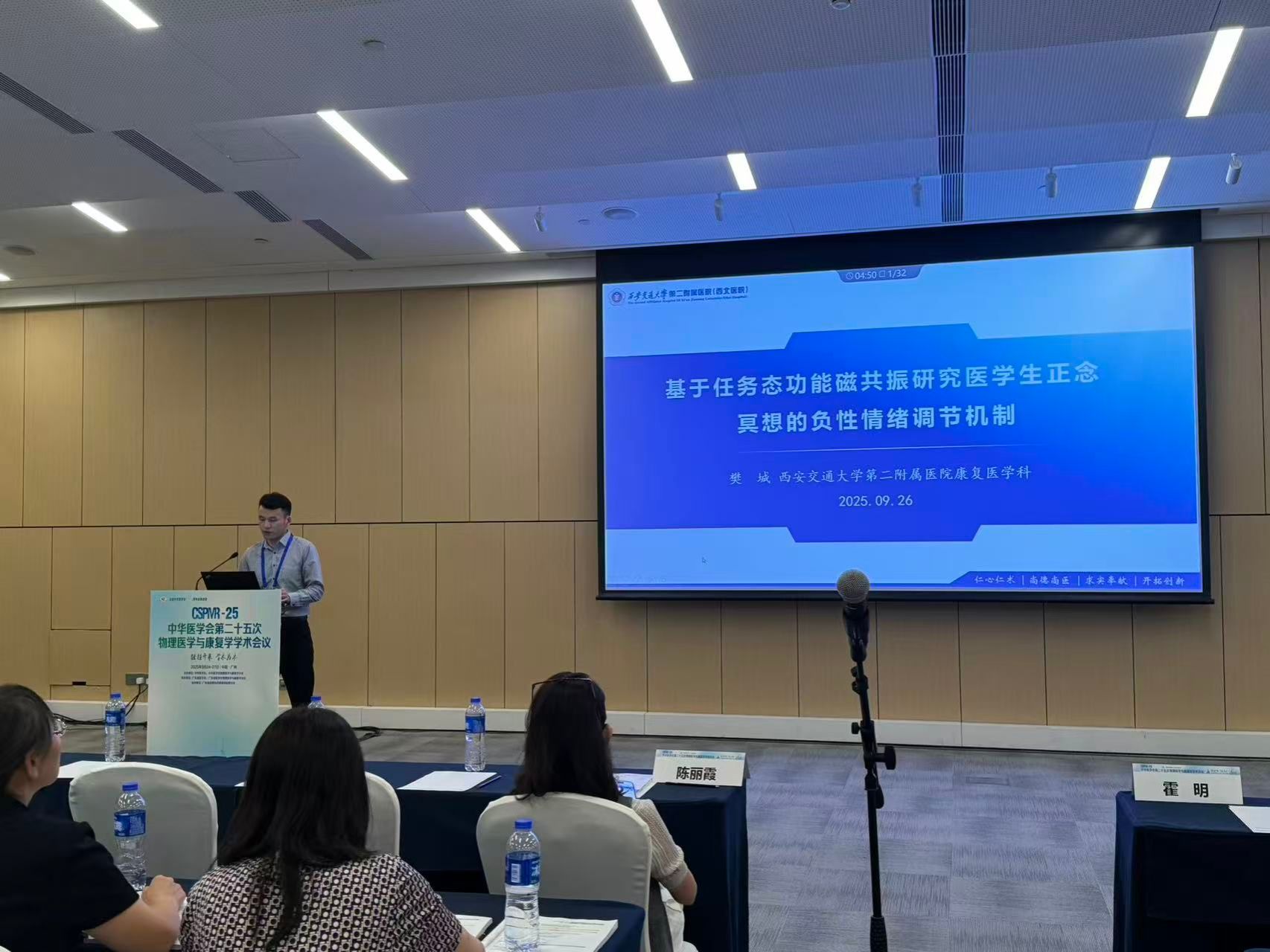 在康复治疗模式与患者体验方面,晏光林治疗师分享了《小组团体作业活动对于住院患者康复满意度和体验感的效果观察》,体现了科室对患者心理社会康复的重视。张司铎治疗师报告了《标准化康复路径结合核心肌群强化训练在老年股骨颈骨折术后的应用研究》,展示了科室在老年骨科康复标准化、精细化方面的实践成果。樊城汇报了《基于任务态功能磁共振研究医学生正念冥想的负性情绪调节机制》,则将康复理念延伸至压力管理与心理健康促进领域。