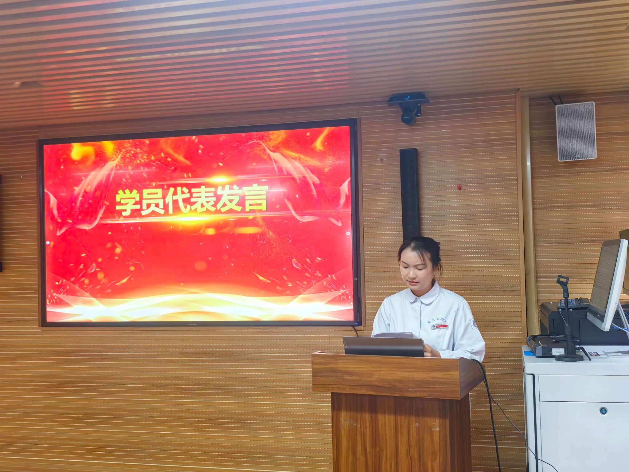 杨妮老师作为学员代表发言。全体学员共同赠送的“创愈授业 恩泽杏林”牌匾,不仅象征着学员们对老师们辛勤付出的深切认可,更代表着学员们对未来继续努力、不负期望的坚定承诺。