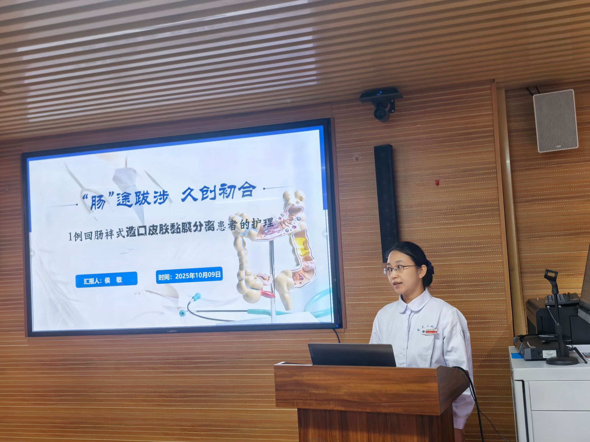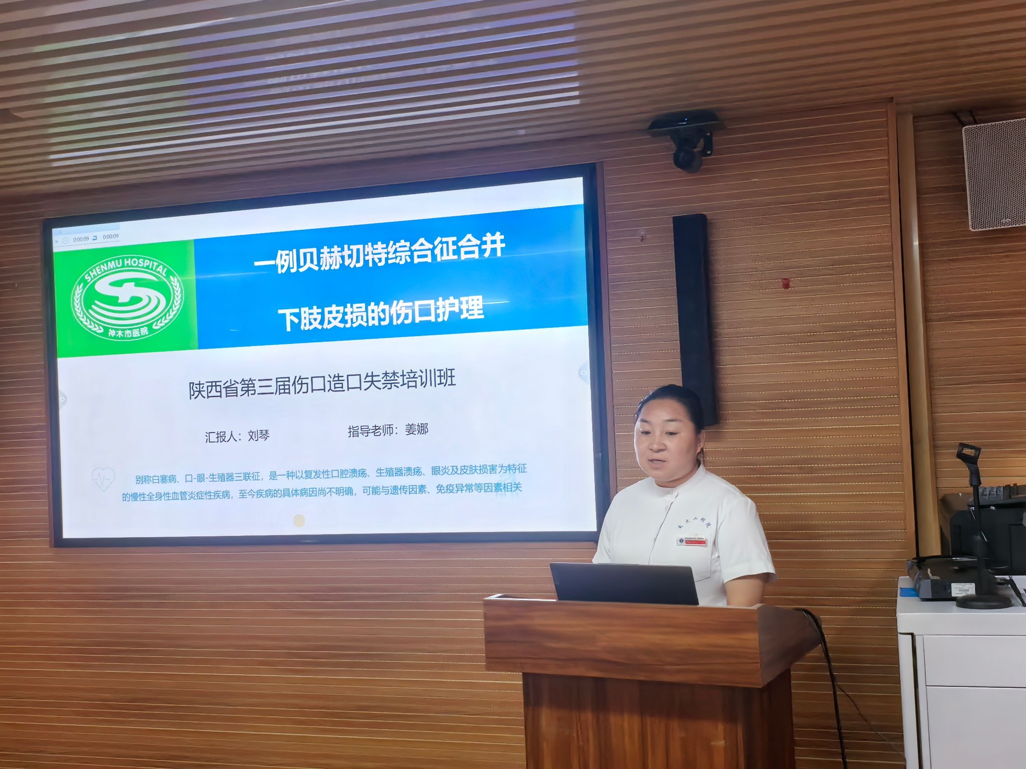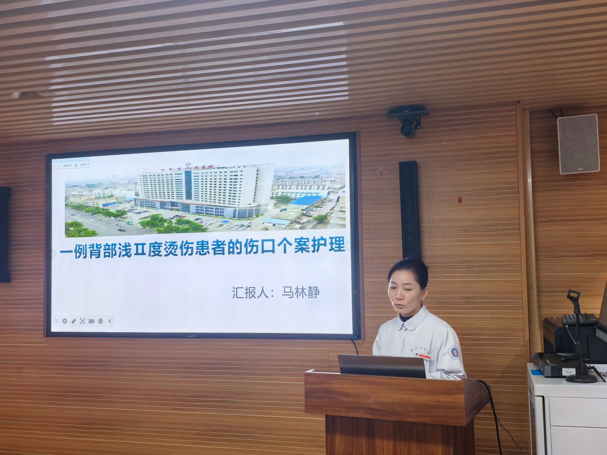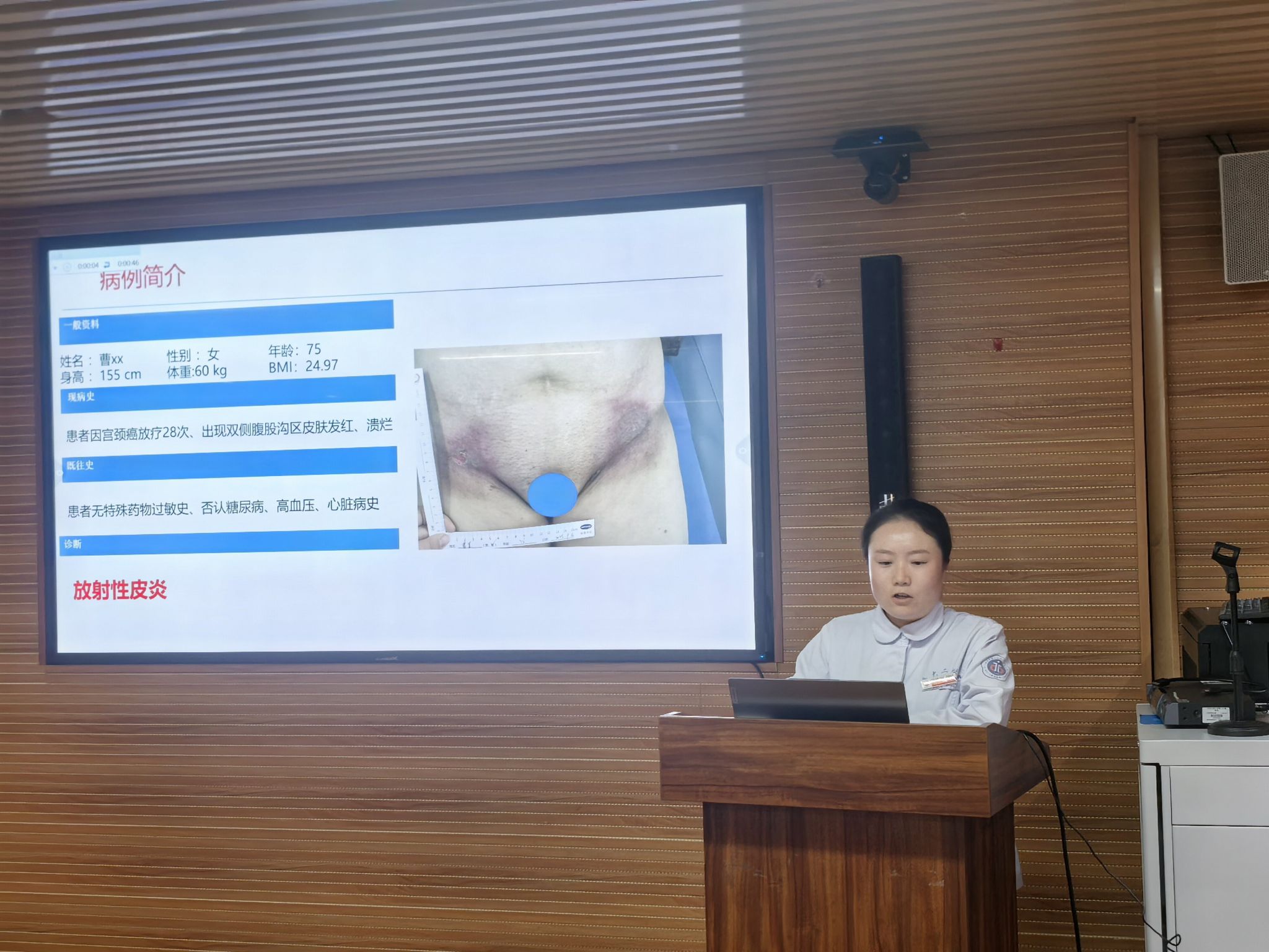 本次案例汇报共有十位专科护士参与,涵盖了多种复杂伤口护理案例。侯敏护士分享了“‘肠’途跋涉,久创初合”案例,展现了肠道相关伤口护理的精细处理及患者恢复过程;杨妮护士以“灼伤愈途,以爱护肤”为主题,凸显了灼伤护理中人文关怀与专业技术结合的重要性;刘琴护士带来一例贝赫切特综合征合并下肢皮损的伤口护理案例,详细阐述了该复杂病症的护理策略;胡娟娟护士的“护‘足’健康,‘糖’程新生”聚焦糖尿病患者足部护理,强调了糖尿病足预防与治疗的关键要点。雷笑笑护士分享一例放射性皮炎患者案例护理,展示了特殊类型皮炎护理的专业技巧;成琤护士的“探‘蜜’糖足,重塑健康”案例,进一步探讨了糖尿病足护理新方法;杨俊荣护士对一例下肢静脉溃疡患者进行案例分析,为下肢静脉溃疡护理提供实践参考;贾小银护士分享一例缝合伤口感染护理案例,强调了感染控制的重要性及有效措施;马婷婷护士分享一例会阴皮肤感染伤口案例护理,介绍了会阴部位伤口护理的特殊注意事项;马林静护士分享一例背部Ⅱ度烫伤患者伤口案例护理,展示了烫伤护理规范流程。