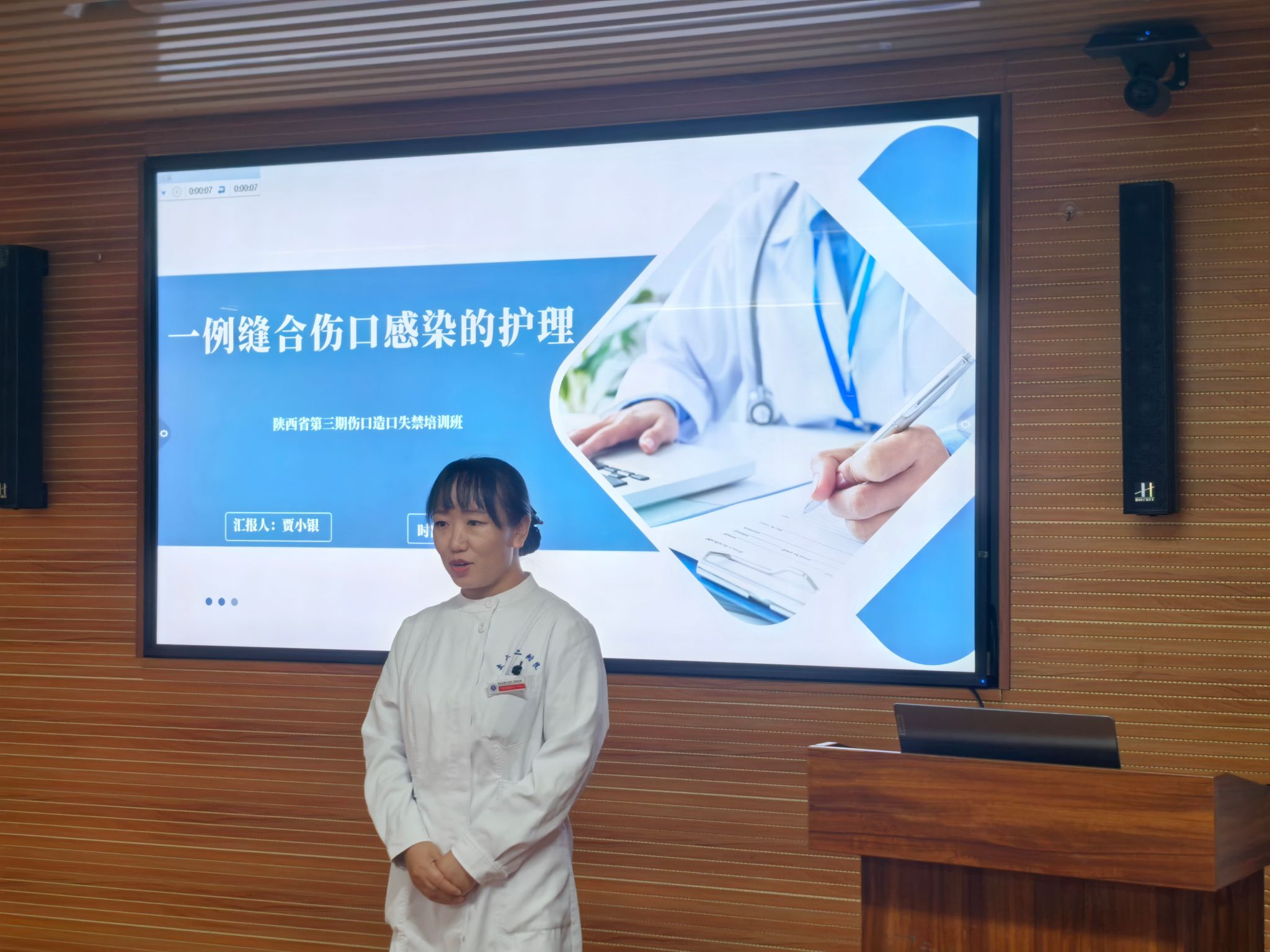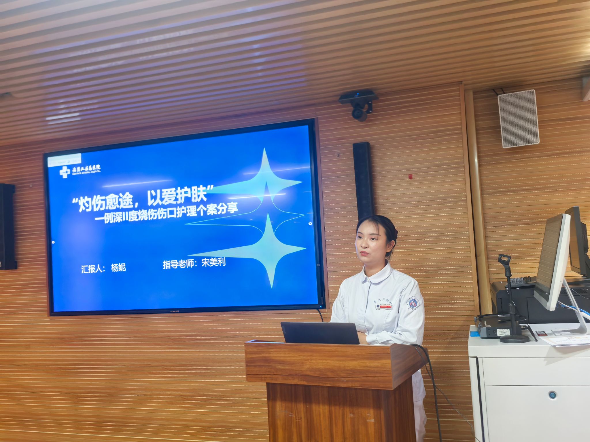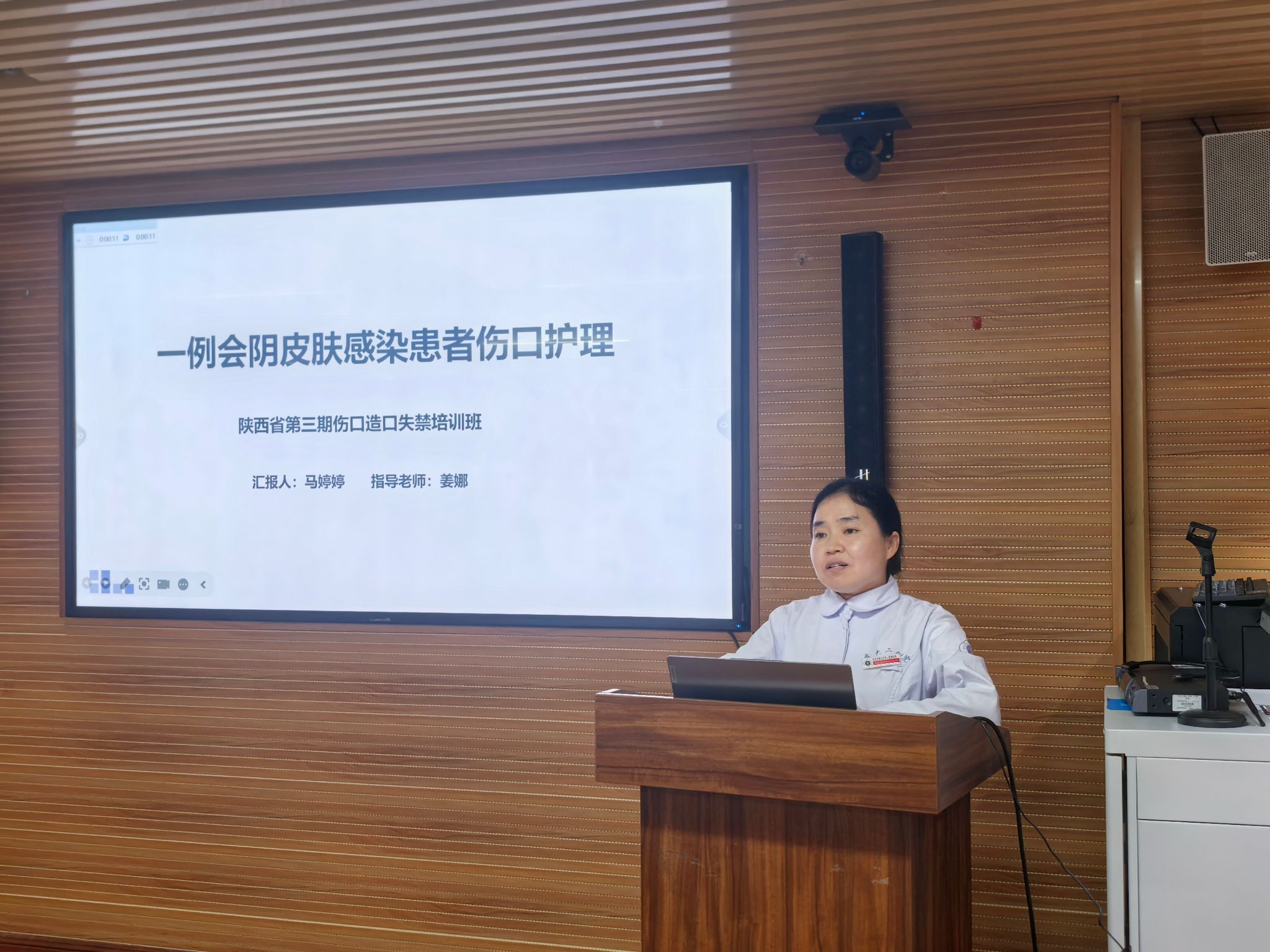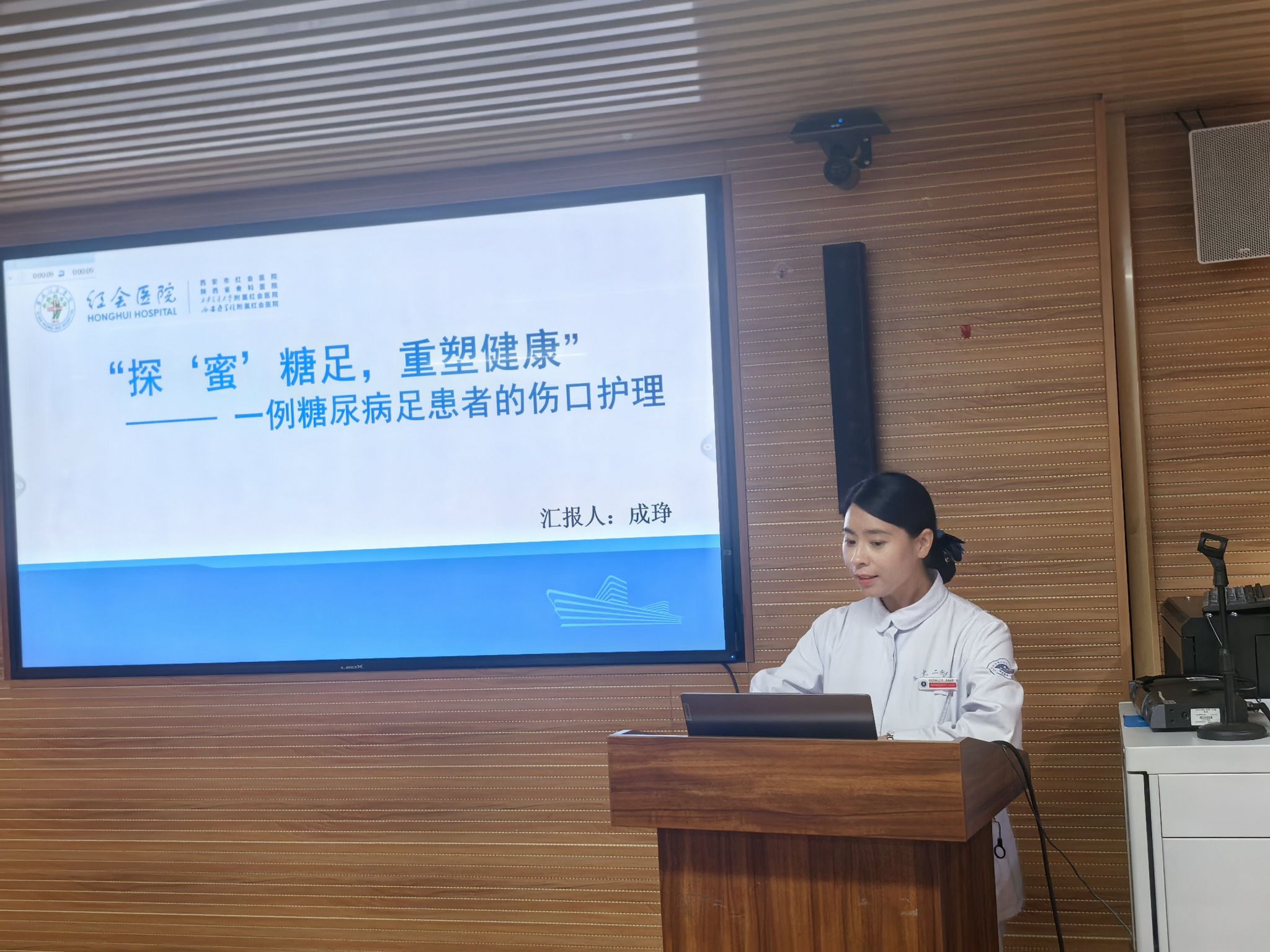 本次案例汇报共有十位专科护士参与,涵盖了多种复杂伤口护理案例。侯敏护士分享了“‘肠’途跋涉,久创初合”案例,展现了肠道相关伤口护理的精细处理及患者恢复过程;杨妮护士以“灼伤愈途,以爱护肤”为主题,凸显了灼伤护理中人文关怀与专业技术结合的重要性;刘琴护士带来一例贝赫切特综合征合并下肢皮损的伤口护理案例,详细阐述了该复杂病症的护理策略;胡娟娟护士的“护‘足’健康,‘糖’程新生”聚焦糖尿病患者足部护理,强调了糖尿病足预防与治疗的关键要点。雷笑笑护士分享一例放射性皮炎患者案例护理,展示了特殊类型皮炎护理的专业技巧;成琤护士的“探‘蜜’糖足,重塑健康”案例,进一步探讨了糖尿病足护理新方法;杨俊荣护士对一例下肢静脉溃疡患者进行案例分析,为下肢静脉溃疡护理提供实践参考;贾小银护士分享一例缝合伤口感染护理案例,强调了感染控制的重要性及有效措施;马婷婷护士分享一例会阴皮肤感染伤口案例护理,介绍了会阴部位伤口护理的特殊注意事项;马林静护士分享一例背部Ⅱ度烫伤患者伤口案例护理,展示了烫伤护理规范流程。