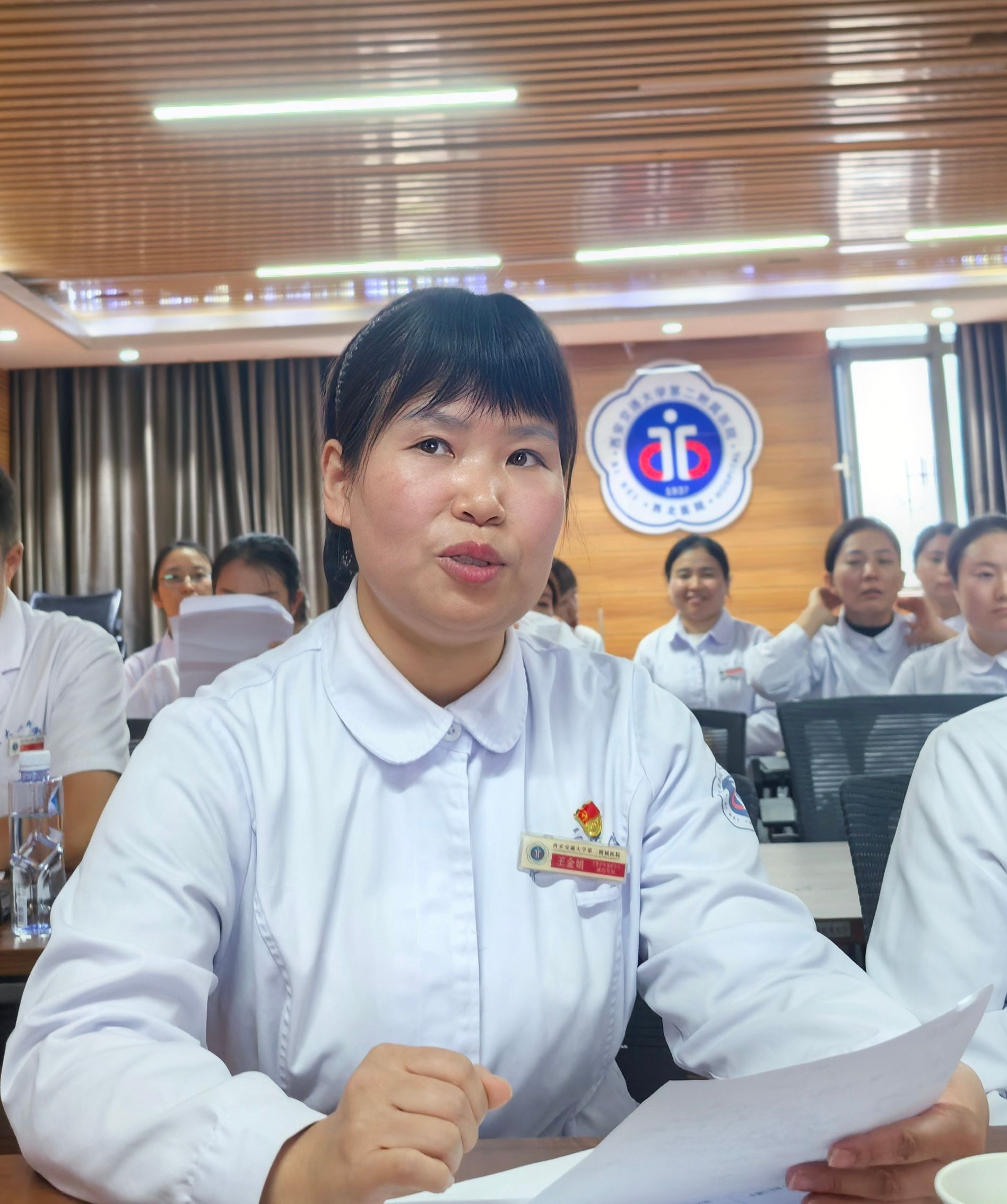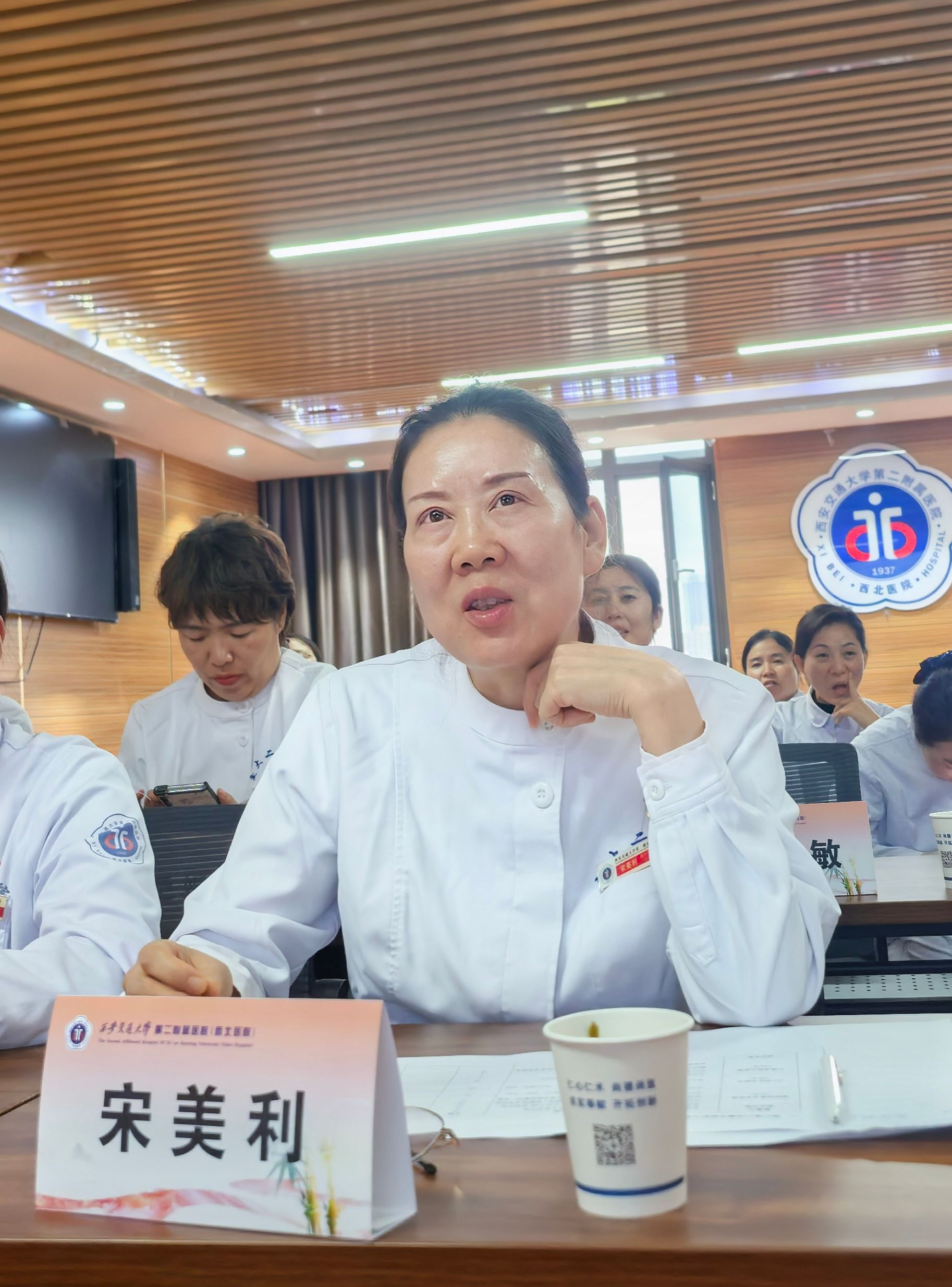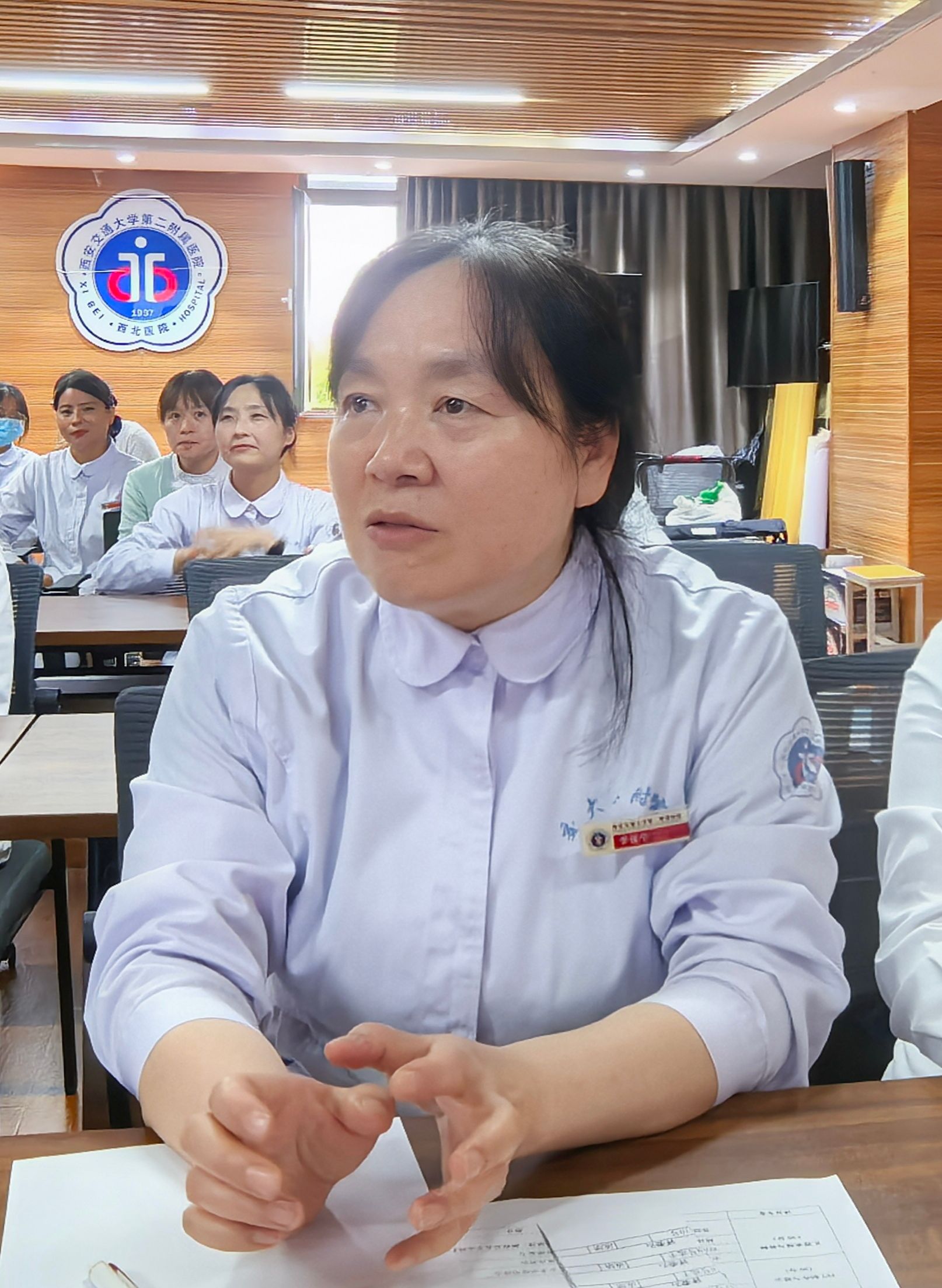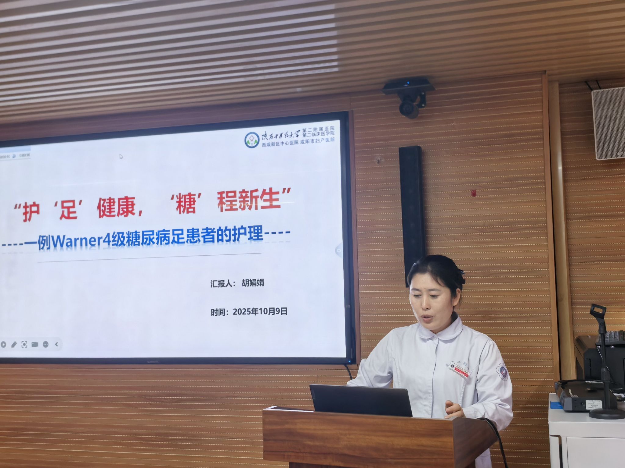 本次案例汇报共有十位专科护士参与,涵盖了多种复杂伤口护理案例。侯敏护士分享了“‘肠’途跋涉,久创初合”案例,展现了肠道相关伤口护理的精细处理及患者恢复过程;杨妮护士以“灼伤愈途,以爱护肤”为主题,凸显了灼伤护理中人文关怀与专业技术结合的重要性;刘琴护士带来一例贝赫切特综合征合并下肢皮损的伤口护理案例,详细阐述了该复杂病症的护理策略;胡娟娟护士的“护‘足’健康,‘糖’程新生”聚焦糖尿病患者足部护理,强调了糖尿病足预防与治疗的关键要点。雷笑笑护士分享一例放射性皮炎患者案例护理,展示了特殊类型皮炎护理的专业技巧;成琤护士的“探‘蜜’糖足,重塑健康”案例,进一步探讨了糖尿病足护理新方法;杨俊荣护士对一例下肢静脉溃疡患者进行案例分析,为下肢静脉溃疡护理提供实践参考;贾小银护士分享一例缝合伤口感染护理案例,强调了感染控制的重要性及有效措施;马婷婷护士分享一例会阴皮肤感染伤口案例护理,介绍了会阴部位伤口护理的特殊注意事项;马林静护士分享一例背部Ⅱ度烫伤患者伤口案例护理,展示了烫伤护理规范流程。