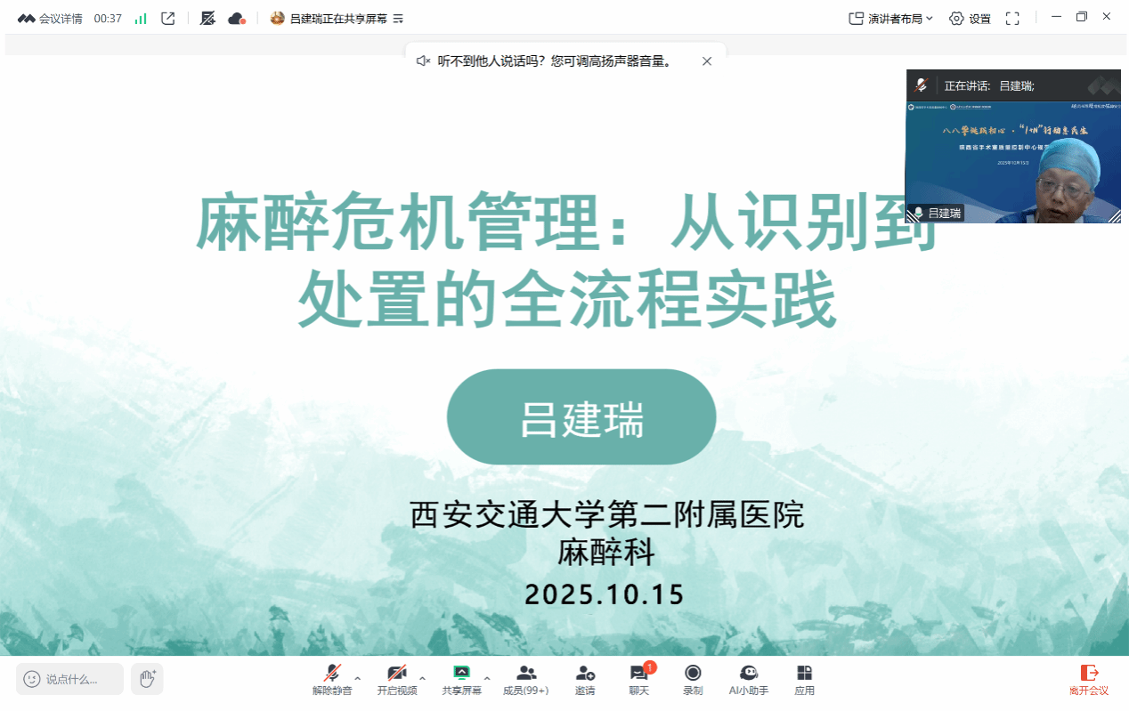 恰逢西安交通大学第二附属医院88周年院庆系列学术活动蓬勃开展之际,2025年10月15日下午,西安交通大学第二附属医院麻醉手术党支部成功举办陕西省手术室质量控制中心主题为“规范书写、精准抢救、保障安全”的线上规范化培训。