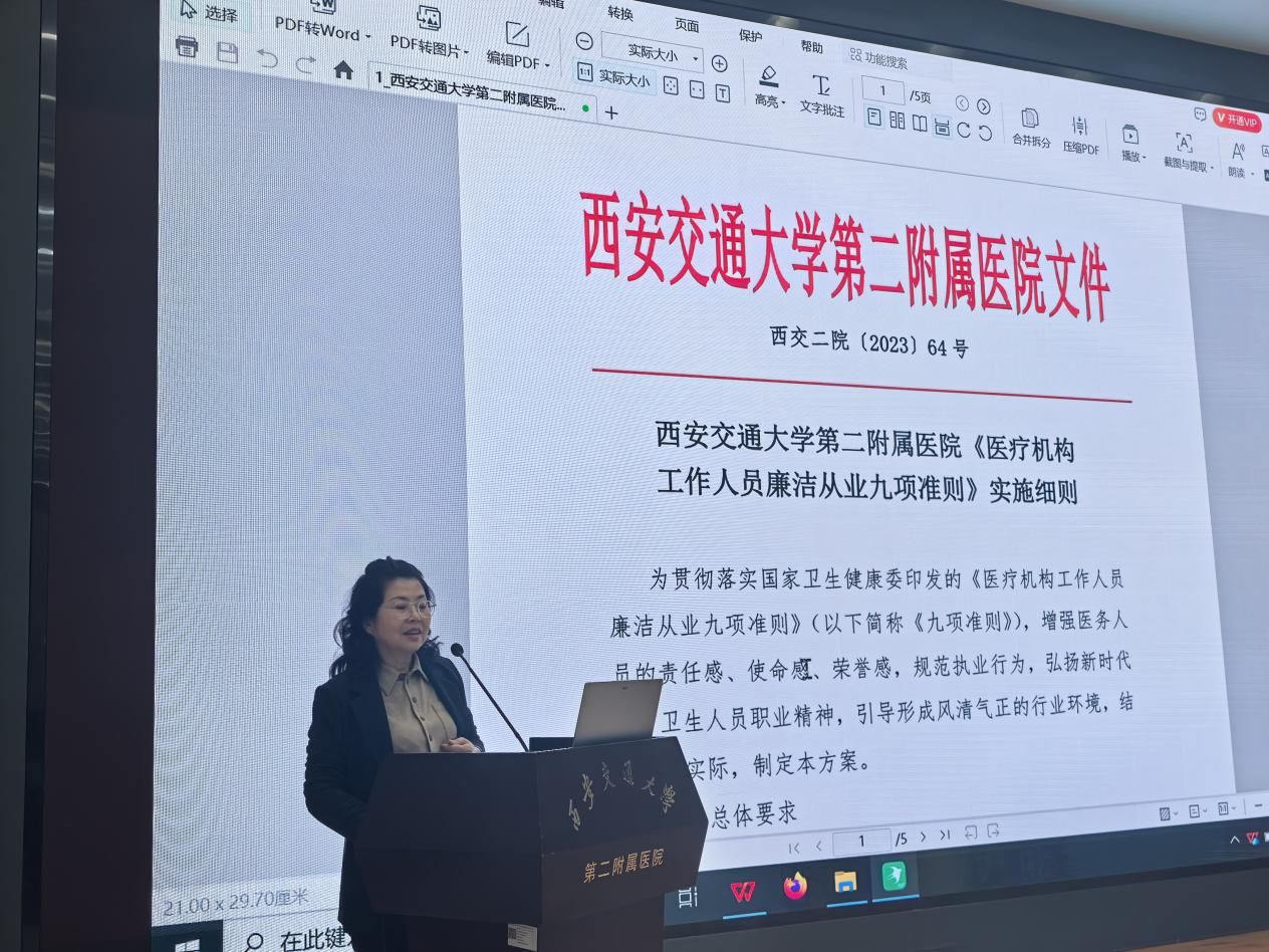 本次会议还对第三季度护理不良事件及三级质控检查结果进行了总结、分析、反馈。最后,护理部杨惠云主任带领全体护士长学习了我院《医疗机构工作人员廉洁从业九项准则》实施细则,进一步强化职业道德与行为规范,为全面提升护理服务质量筑牢制度与思想根基。