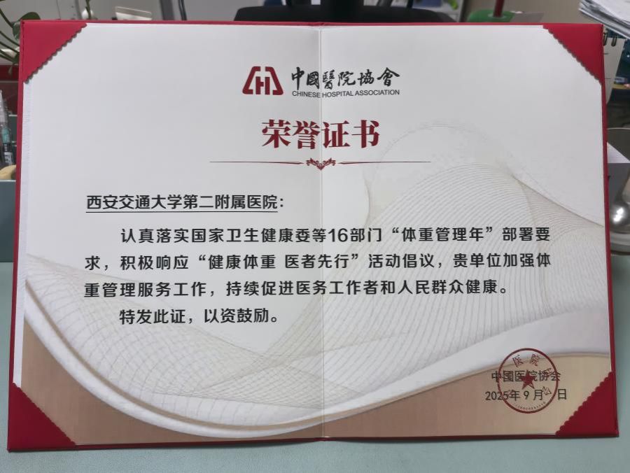 我院体重管理服务工作获得中国医师协会奖励
