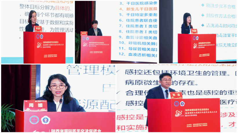 成立大会结束后,聚焦当前感控实践中的难点与热点,进行了系列专题报告。陕西省院感质控中心常务副主任、西安交通大学第一附属医院李宝珍教授,陕西省院感质控中心副主任、我院院感办李金娜教授,西安护理学会院感专委会主任委员、西安市儿童医院程丽萍教授、新疆维吾尔自治区人民医院周媛教授、陕西省国际医学交流促进会感染预防与控制专业委员会主任委员、我院医务部副主任、院感办主任张晨教授等从《如何让感控督导更精准更高效》、《新生儿病区医院感染防控要点》、《软式内镜医院感染管理与实践》、《医院高质量发展之下感控工作思考》、《感控学科化发展与感控文化建设》等热点问题进行了精彩演讲,现场学术氛围浓厚,互动热烈。