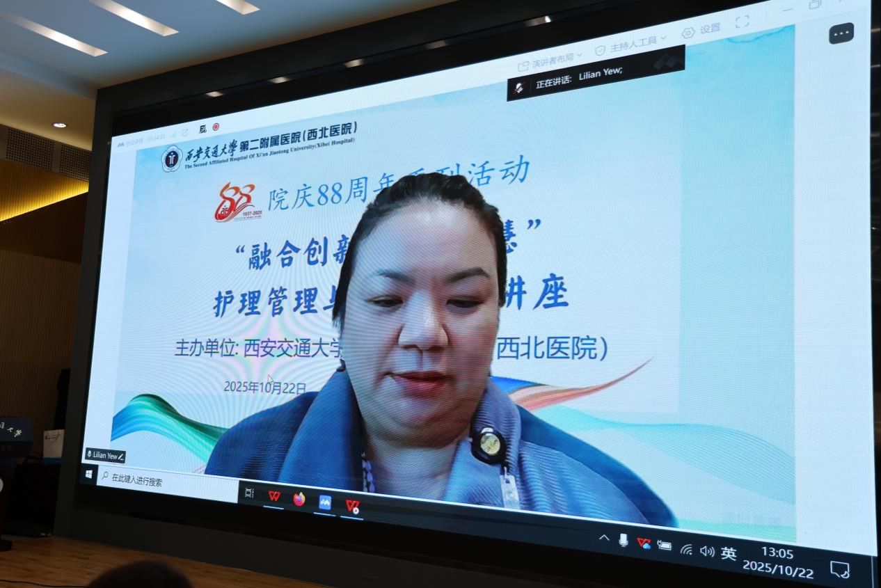 88载栉风沐雨,88载薪火相传。为进一步推动护理管理提质增效,促进护理创新思维与行为,2025年10月22日下午,“融合创新 共享智慧”护理管理与创新学术讲座在我院隆重举办。本次学术讲座特邀4位新加坡护理专家进行授课。医院副院长种铁、护理部主任杨惠云、护理部副主任孔德玲、姚聪、总护士长周晓荣、王秀莹、杨长虹、杨会、王蓉、杨晓平、皮肤科护士长高晓敏及伤口造口专科护理小组组长王金娟护士长出席讲座开幕式。本次讲座采用线上线下相结合的形式,吸引全院1000余名护理人员参与。