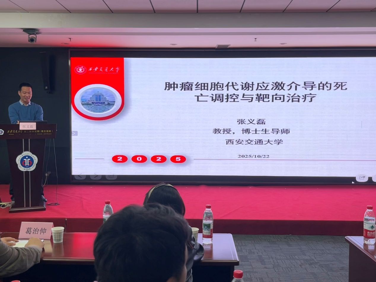 10月22日,西安交通大学第二附属医院老年普通外科为深入推动学科高质量发展,特邀陕西省青年千人、西安交通大学第一附属医院特聘教授、基础医学院张义磊教授,作了题为“肿瘤细胞代谢应激介导的死亡调控与靶向治疗”的专题讲座。科室主任王志东教授,科研副主任葛治伸教授,以及科室临床医生与研究生共同参加了本次学术活动。