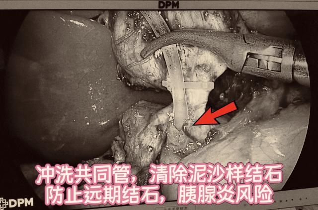 10月22日,手术如期进行,当腹腔镜进入小花狭小的腹腔后,挑战接踵而至:由于炎症,囊肿壁明显充血肿胀增厚,结构模糊,更棘手的是,术中发现小花的肝右动脉横跨在肝总管上方,这好比在需要精细缝合的“施工路段”上方,横亘着一条重要的“输油管道”,大大增加了手术操作难度和风险。高亚教授凭借精湛的技艺和丰富的经验,在方寸之地稳稳操作,将囊肿游离至胰腺段近胰管处,经囊肿远端(直径2mm)插管冲洗,彻底清除共同管内蛋白栓及结石,横断并缝合囊肿远侧断端,然后游离出肝右动脉,于其前方进行胆肠吻合,如同进行一场精密的“绣花”。整台手术出血量不到10毫升,仅在肚脐处留下一个不到2厘米的隐秘切口。