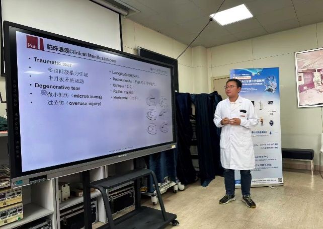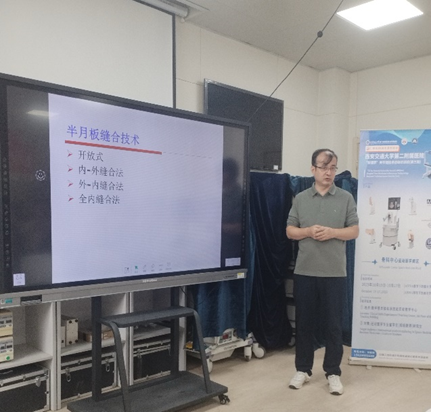 时志斌教授、刘瑞宇教授及樊立宏教授等专家认真授课,分别就半月板损伤及肩袖的诊治查体、膝关节镜、肩关节镜、前交叉韧带重建及医体结合等相关专题进行了全面细致的讲解。以理论结合实践的方式进行教学,本次培训首次实现了针对肩、膝、髋、踝、肘、腕等全身多个关节的授课,覆盖运动医学常见疾病的诊断及治疗。实操与理论结合,每个技术要点都配有详实的解剖学、生物力学理论基础,护理与康复结合,形成完整诊疗闭环。第三届培训班继续对国内外招收学员,吸引了诸多来自西安交大各国留学生、外地临床医生及基层学者的积极参与,学员们全神贯注,深入探讨和学习运动医学关节镜手术技术在临床的应用。各国学员学习热情高涨、认真倾听、讨论热烈,学习氛围浓厚。