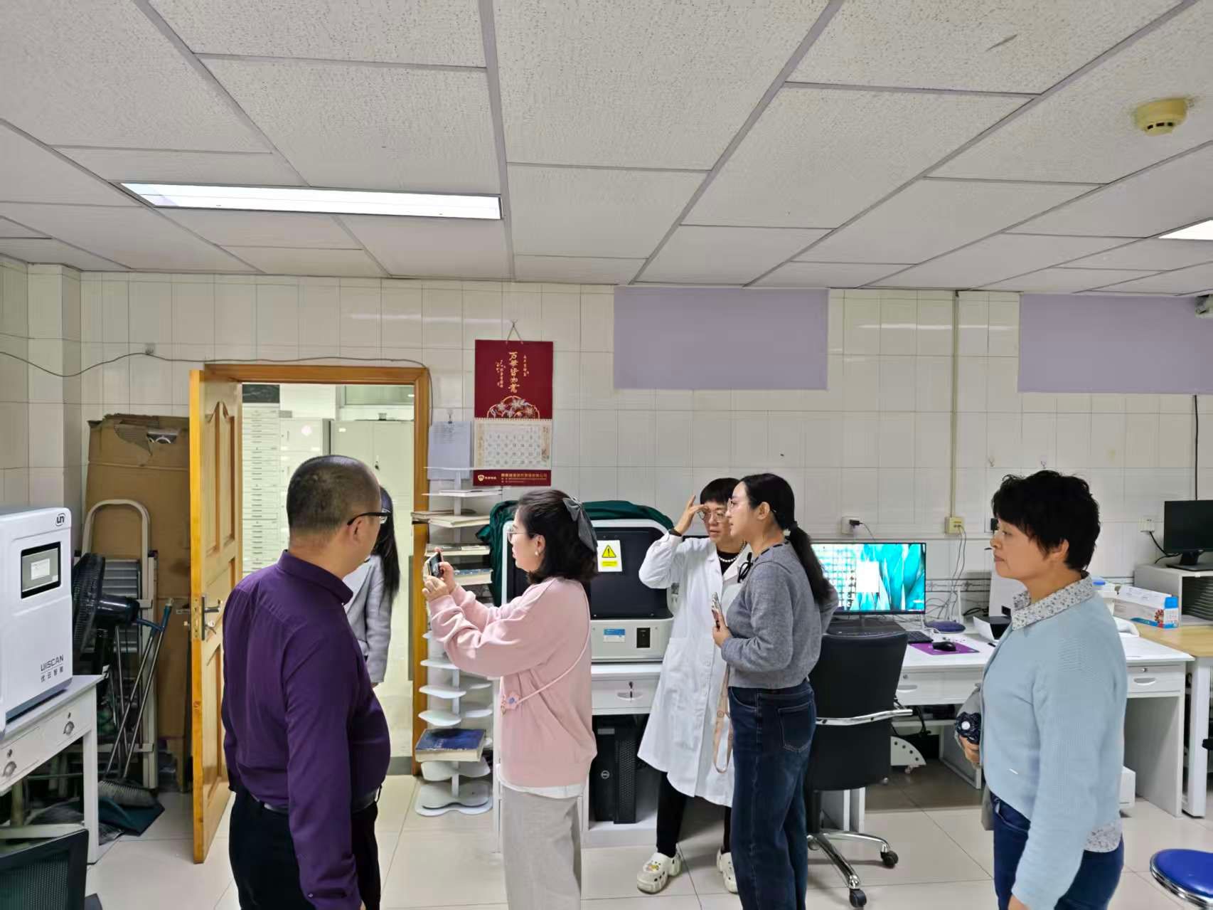 会后,交大二院代表一行实地参观了自治区人民医院病理科诊断室、分子室、取材室、细胞室、技术室等各功能区域。通过现场观摩设备、了解操作流程、考察通风系统,并与一线工作人员就切片制作、免疫组化对照等细节进行面对面交流,进一步加深了相互了解,为后续更精准、更深入的合作建立良好的基础。