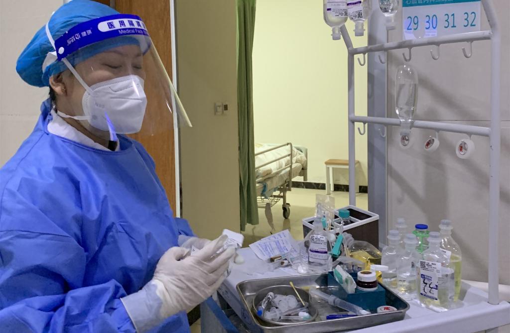 护师关颖为新冠感染阳性患者做治疗