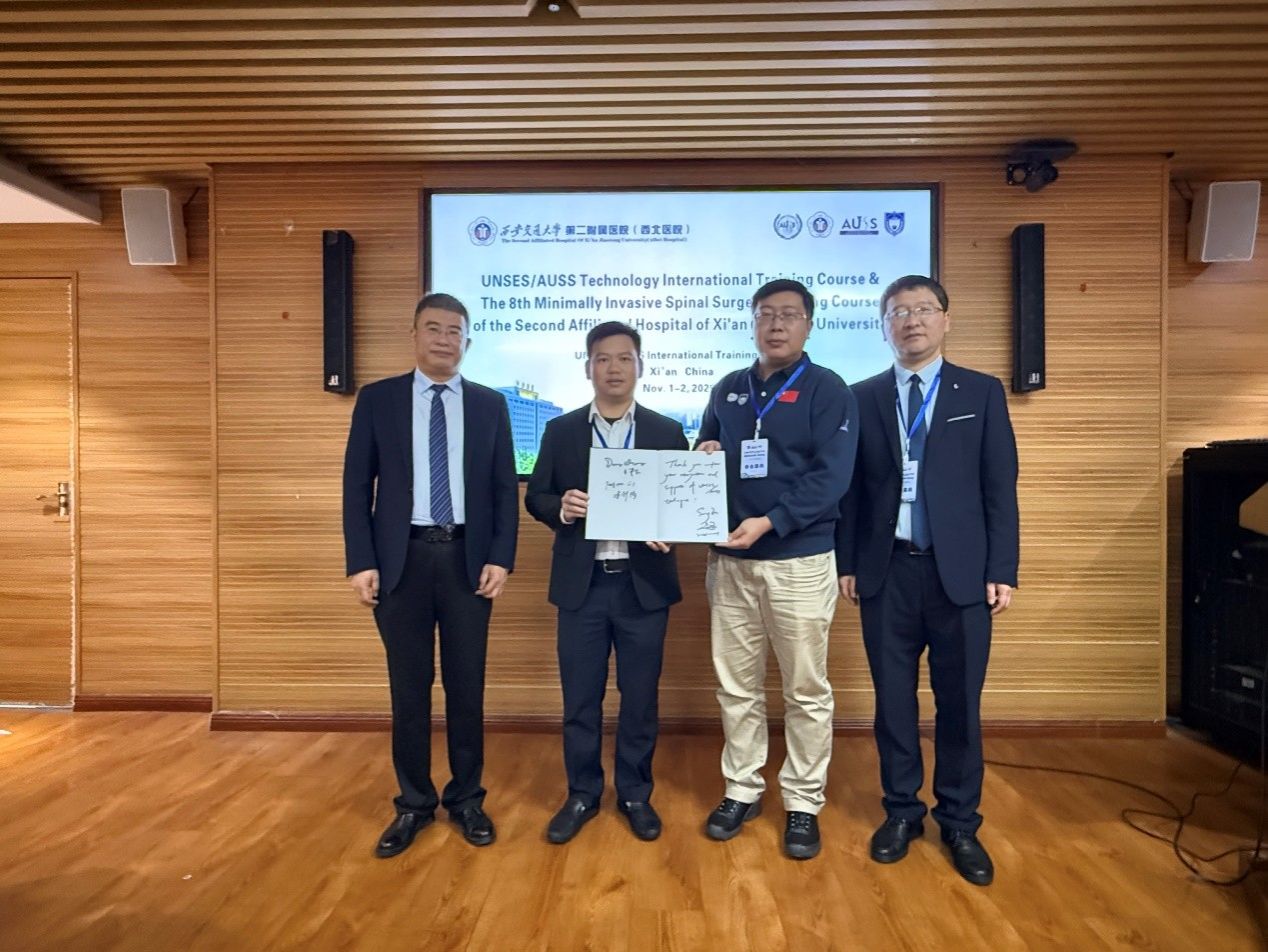 西安交通大学第二附属医院作为中国西北地区脊柱外科领域的头部单位,其脊柱与骨肿瘤病区长期致力于脊柱微创技术的创新与推广。通过举办UNSES/AUSS国际培训班,该院将自主研发及优化的技术体系系统化提升,通过扎实的理论、动物实操、临床病例演示、严格的考核,目标是为我国“一带一路”宏伟蓝图沿线国家输出中国原创技术、培养脊柱微创国际人才,助力中国技术国际化。