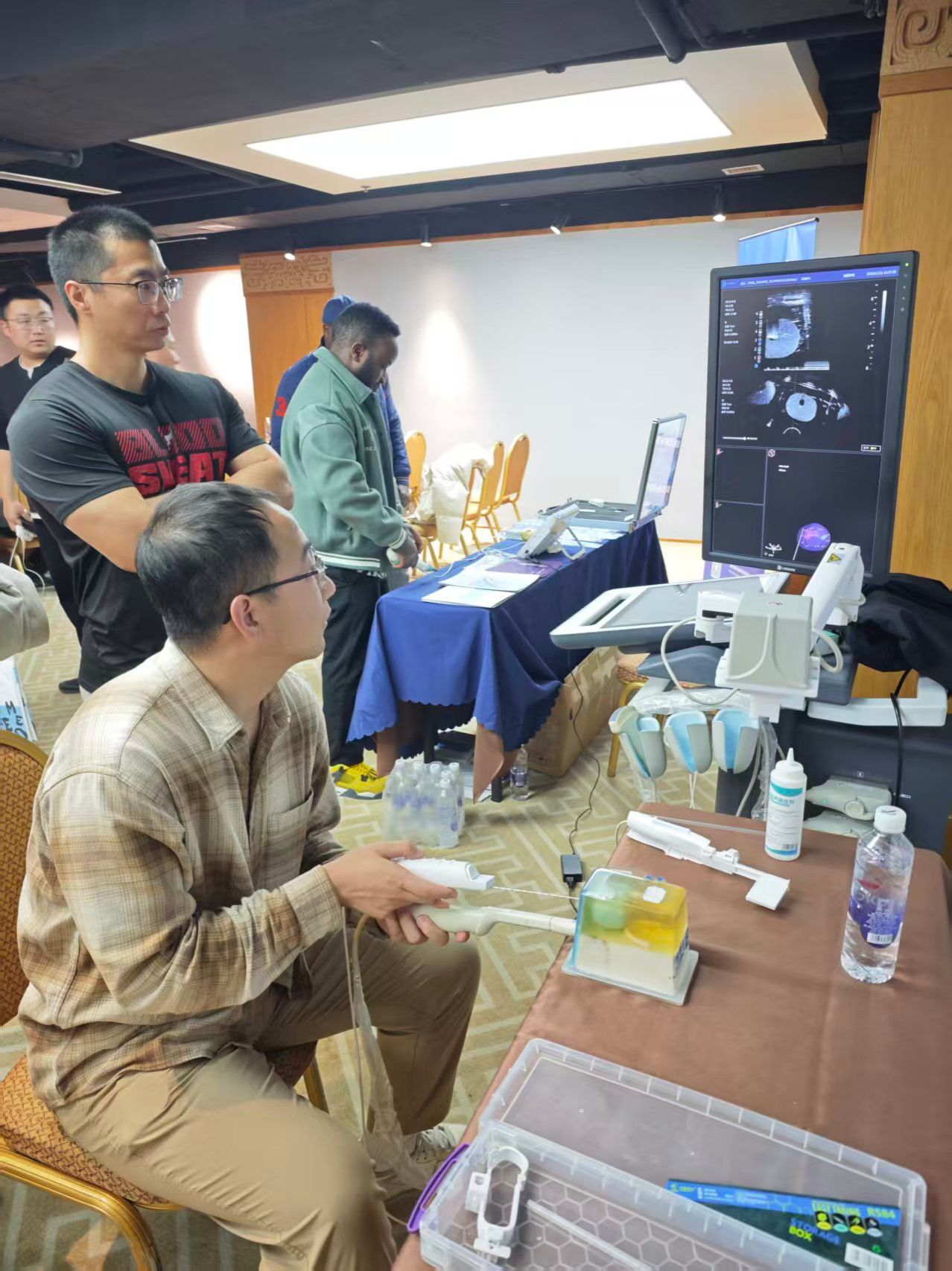 学习班注重理论与实践相结合。在模拟演练环节,学员在泌尿外科赵旭医生指导下,结合实时影像进行穿刺练习,进一步巩固了技术要点。值得一提的是本次培训班还受到国外学员的关注,现场互动频繁,讨论热烈,展现了专业学术交流的深度与活力。
