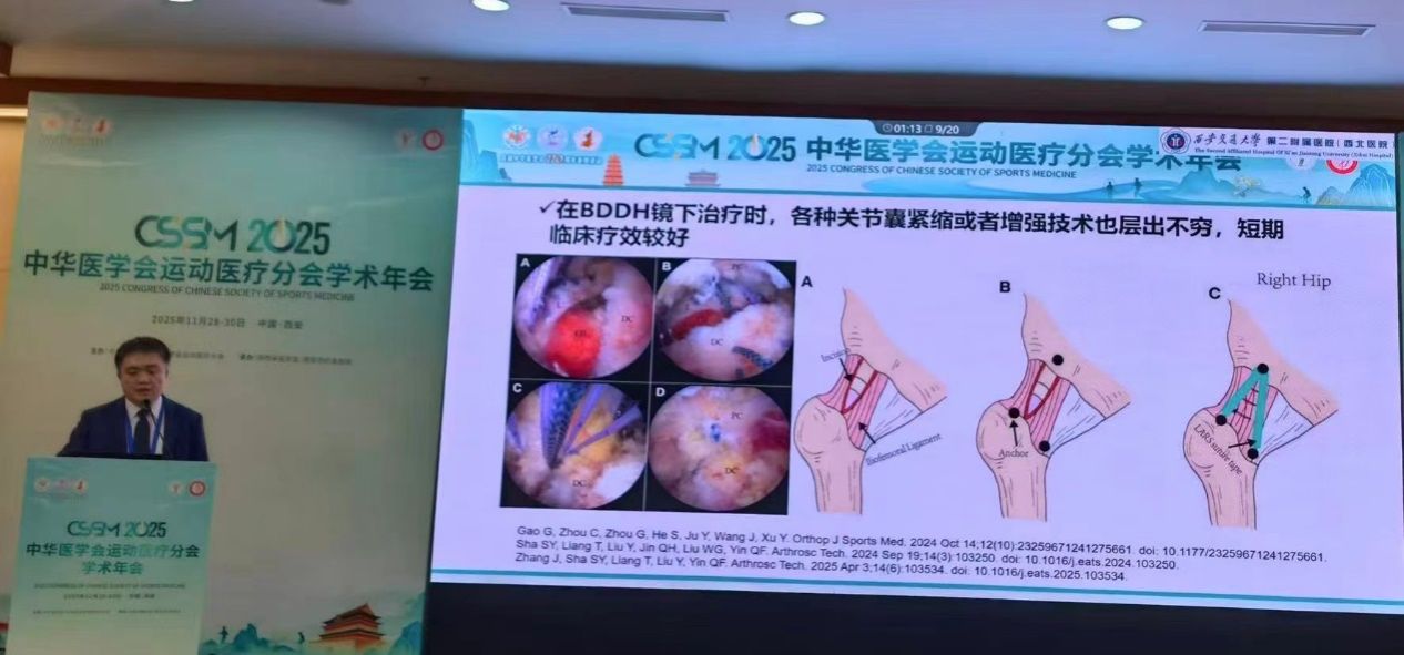 在髋关节镜专场交流中,时志斌主任就运动医学热点、难点之一的髋关节镜微创手术的技巧分享受到参会人员的高度好评。系统梳理了临床诊疗要点与优化路径,为推动该类疾病的标准化治疗提供了实践指导。髋关节镜手术代表着运动医学领域的前沿技术,时志斌教授的团队研究实现了从‘经验依赖’到‘精准制导’的革命性转变,大幅提升手术精准度、降低并发症风险,下一步团队将持续深化该技术与精细智能的深度融合,全力推动运动医学向个性化、数智化、精准化方向发展。