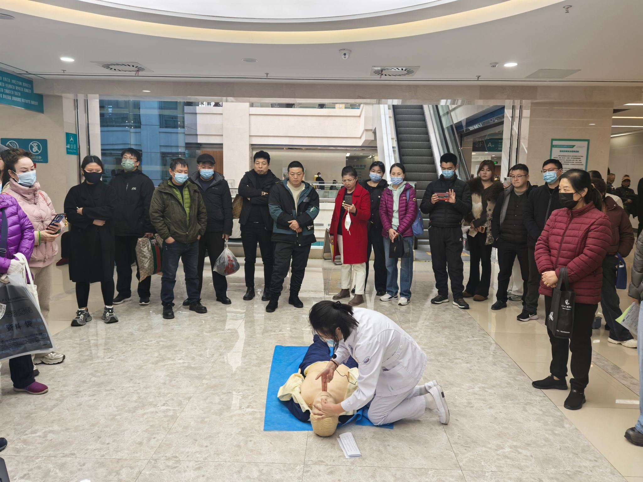 为了让理论知识更好地转化为实践能力,讲座设置了模拟操作环节。利用专业教学模型,分步骤、慢动作详细演示了评估环境、判断意识、呼救求助、胸外按压、开放气道、人工呼吸等完整的心肺复苏操作流程,并对按压部位、深度、频率以及操作注意事项等核心要点进行了重点讲解。在场患者及家属踊跃参与,在指导下进行模拟练习。